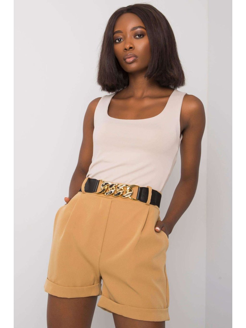 Dámské šortky s elastickým pasem, kapsy na zip. Šortky s ozdobným páskem. Skvěle se hodí pro mnoho stylů.
