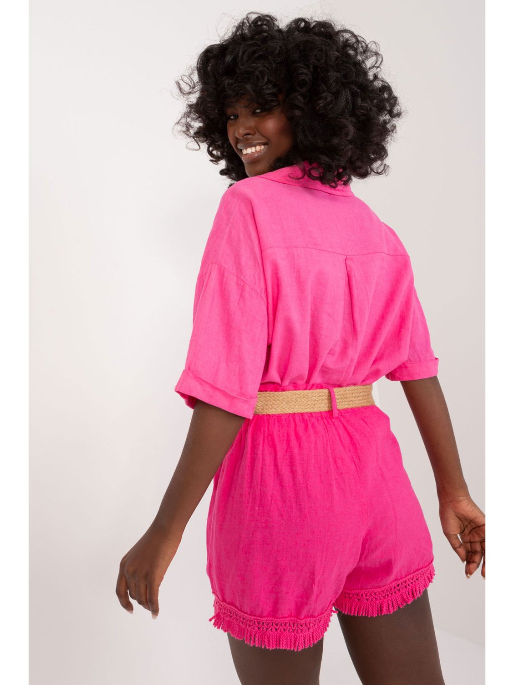 Tyto látkové šortky jsou ideální volbou pro každodenní letní stylizaci a dodají každému outfitu ležérní šarm. Jsou vyrobeny z lehkého lnu s příměsí bavlny a nabízejí prodyšnost a pohodlí i v těch nejteplejších dnech. Jejich široké nohavice s třásněmi dodávají charakter a lehkost a celému outfitu originální vzhled. Stylizované v ležérním duchu se tyto šortky hodí k mnoha různým outfitům. Díky jednobarevnému materiálu jsou univerzální a lze je snadno kombinovat s dalšími kousky ve vašem šatníku. Jejich vysoký střih navíc zdůrazňuje pas a dodává jim ženský nádech. Šortky mají v pase přezku, která vám umožní přizpůsobit si je své siluetě. Tyto šortky, které se skvěle hodí na každodenní procházky, setkání s přáteli nebo letní výlety, budou dokonalým doplňkem vašeho letního šatníku a poskytnou vám styl a pohodlí po celý den.