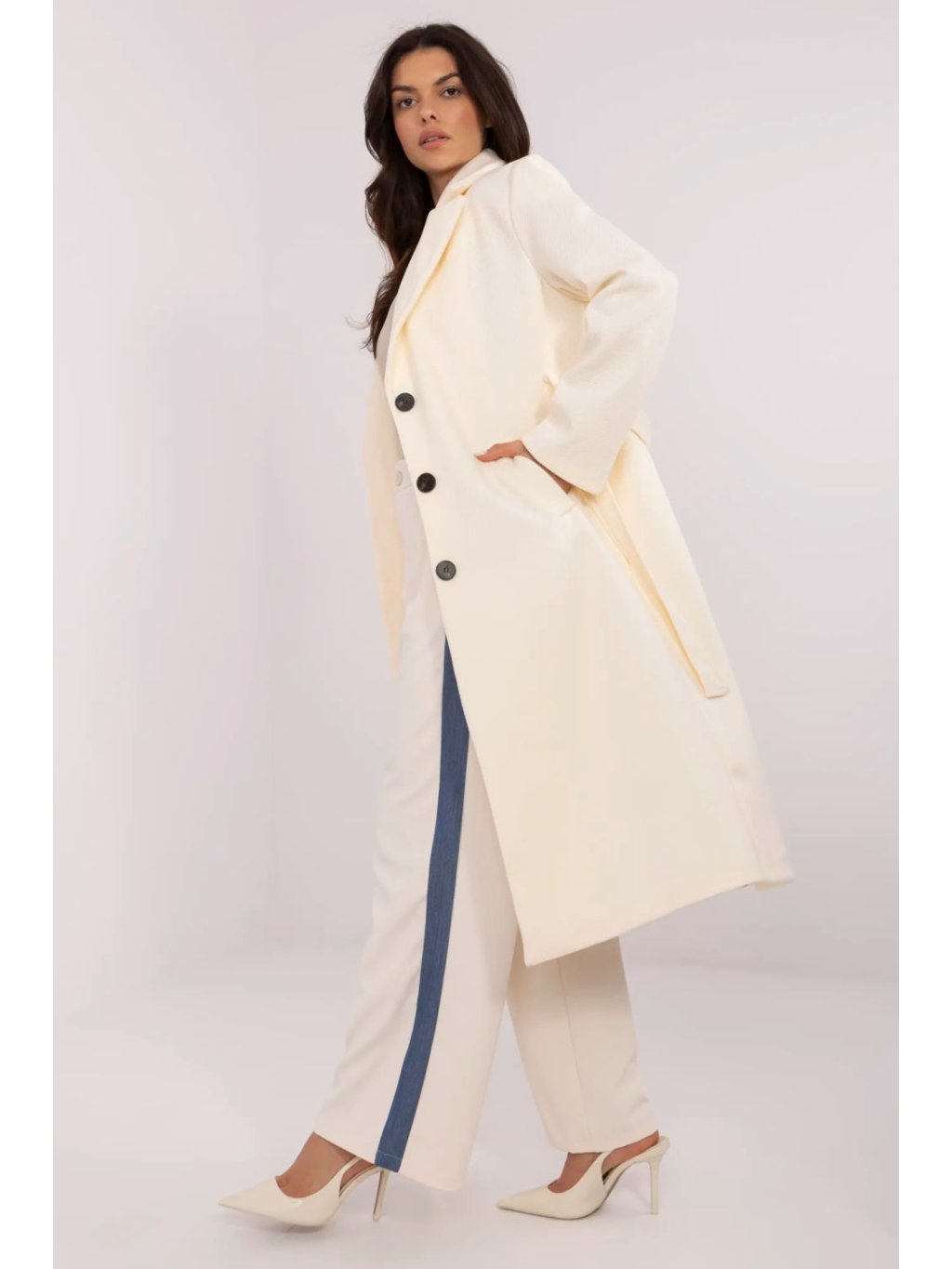 Elegantní dámský kabát je skvělou volbou na přechodné dny, spojující styl a funkčnost. Vyrobený z kombinace polyesteru a elastanu poskytuje pohodlí a dostatečnou pružnost. Kabát po kolena s dlouhými rukávy bude ideálním řešením jak na každý den, tak na společenské události nebo do práce. Drobné proužky na materiálu mu dodávají jemný, klasický charakter. Zapínání na knoflíky a jednořadý střih s páskem k zavázání zdůrazňují eleganci, a kapsy zapínací a podšívka zajišťují pohodlné nošení. Jedná se o kabát, který spojuje moderní design s nadčasovou elegancí.