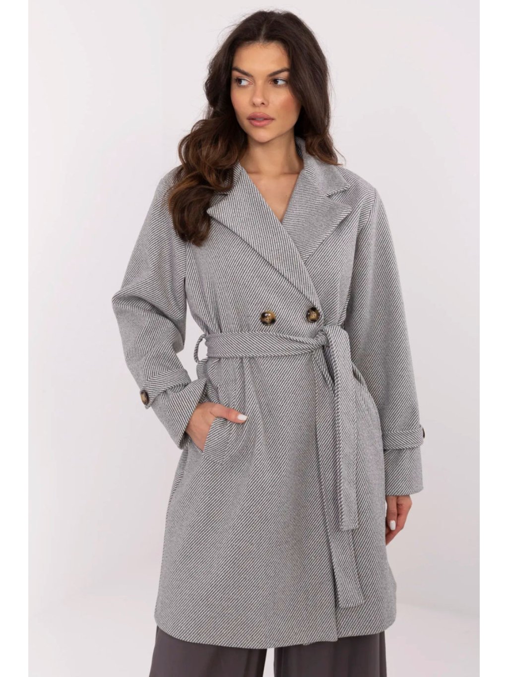 Elegantní dámský kabát se drobnými pruhy a polštářky na ramenou je stylový a nadčasový návrh na přechodnou sezónu ideální na podzim, zimu (bez mrazů) a jaro. Vyrobený z vysoce kvalitního polyesteru a vybavený podšívkou zajišťuje pohodlí nošení a udržuje uklizený vzhled bez ohledu na příležitost. Kabát sahá před koleno, má dlouhý rukáv, klasický střih bez kapuce a dvouradé zapínání na knoflíky, které ve spojení s pásem krásně zdůrazňuje pas a přidává ženské siluetě tvar. Drobné pruhy jemně prolamují klasiku a vnášejí do ní kousek moderní elegance. Vložené kapsy jsou praktickým detail, který přidává funkčnost, a absence podšívky z něj dělá ideální lehkou, stylovou vrstvu na chladnější dny jak do práce, tak i na více oficiální výstupy.