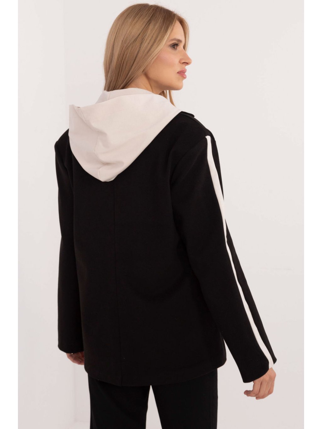 Elegantní sportovní sako na každou roční dobu. Kombinace pohodlí a stylu. Vyrobeno z měkké, prodyšné směsi viskózy, nylonu a elastanu, zajistí pohodlí po celý den. Dlouhý rukáv a odnímatelná kapuce chrání před chladem a zároveň přidávají sportovní charakter. Standardní délka a hladký materiál dělají sako neuvěřitelně univerzálním. Kontrastní pruhy na rukávech dodávají originalitu. Podšívka zvyšuje pohodlí nošení a prodlužuje životnost materiálu. Ideální jak do práce, tak na běžné nošení. Toto sako je investicí do vaší šatníku. Jeho univerzální střih a praktická řešení vám zajistí pohodlí a styl ve každé situaci.