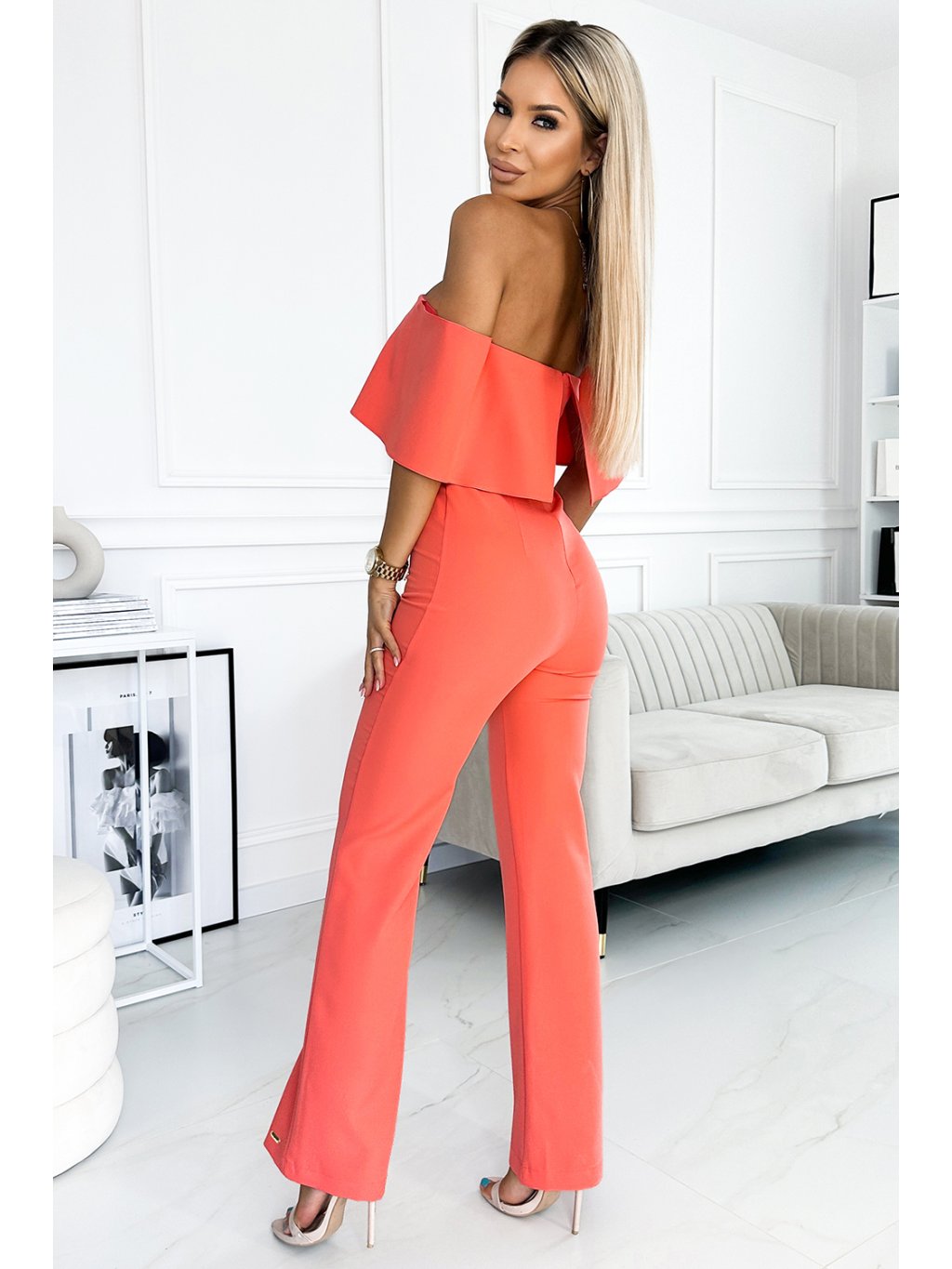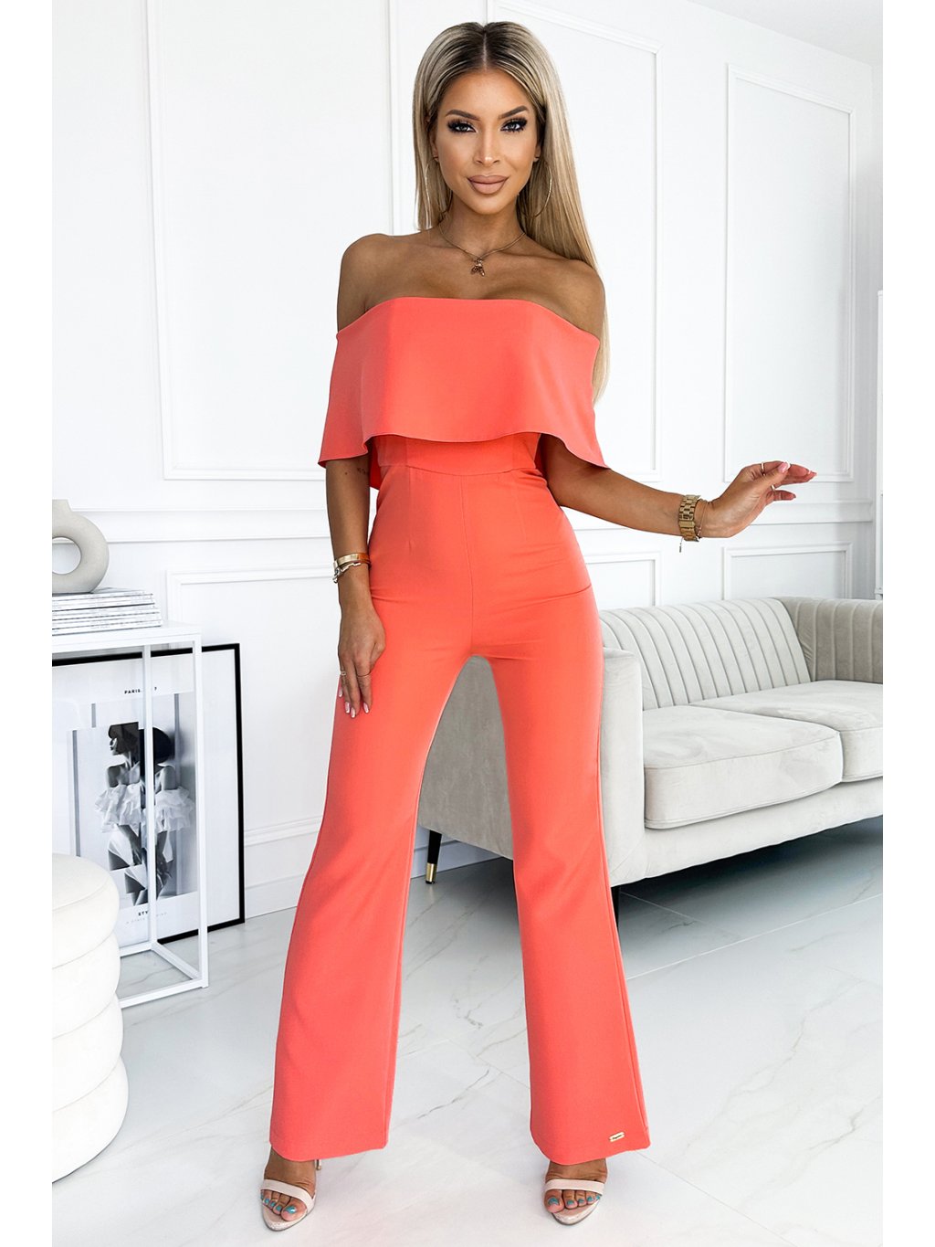 Body v broskvové barvě s volánkem a odhalenými rameny. Horní díl je obšitý korzetem s kosticemi. Zapíná se na krytý zip na zádech. Značka bergamo. Polská výroba. LIMITOVANÁ EDICE.
