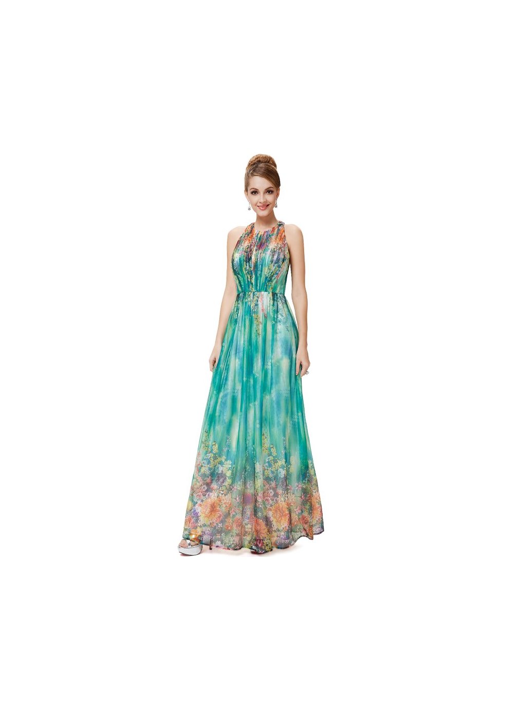 Ever Pretty letní květinové šaty tyrkysové 8258