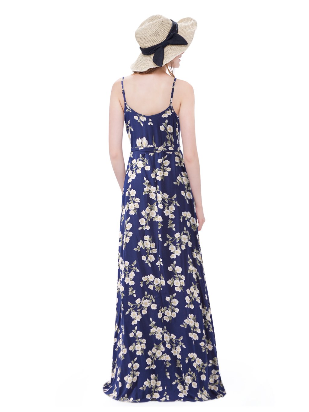 Dlouhé letní šatičky z příjemného materiálu, vhodné na léto, i slavnostní příležitosti. Šaty jsou na ramínka s odhalenými zády, s možností utažení za krkem pomocí šňůrky. V pase je guma. Šaty mají velký rozparek v přední části sukně. Šaty jsou volného střihu.