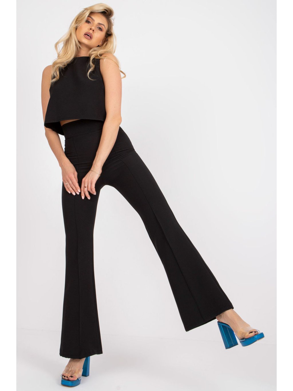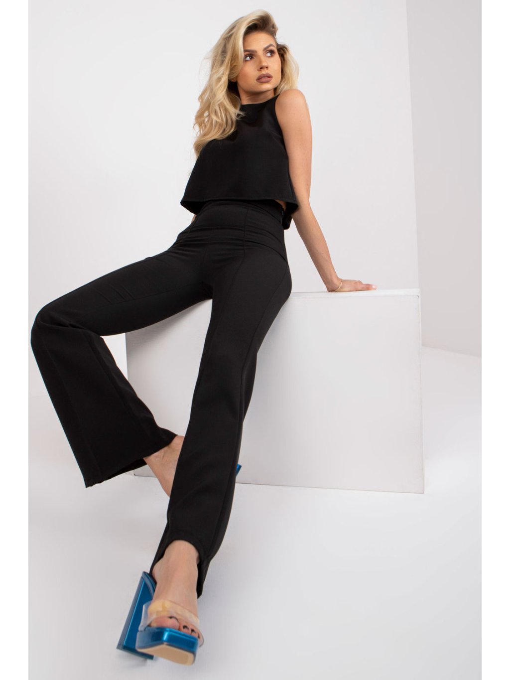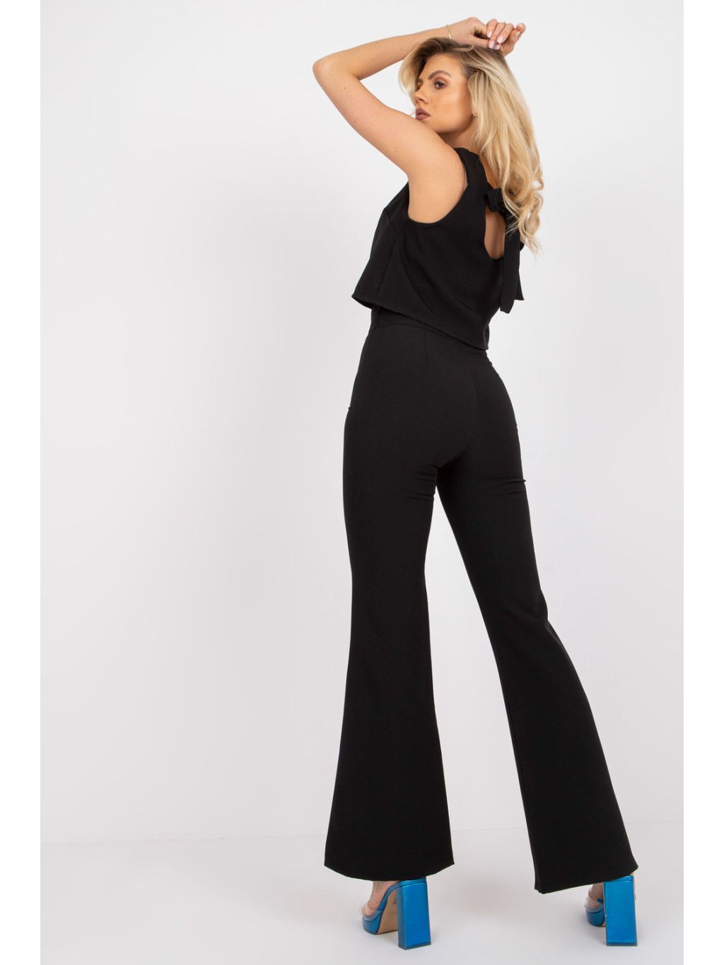 Elegantní souprava sestávající z halenky a dlouhých kalhot. Krátká halenka bez rukávů se zavazováním na zádech. Dlouhé kalhoty s vysokým pasem, zapínané na krytý zip. Ideální sada pro mnoho příležitostí.