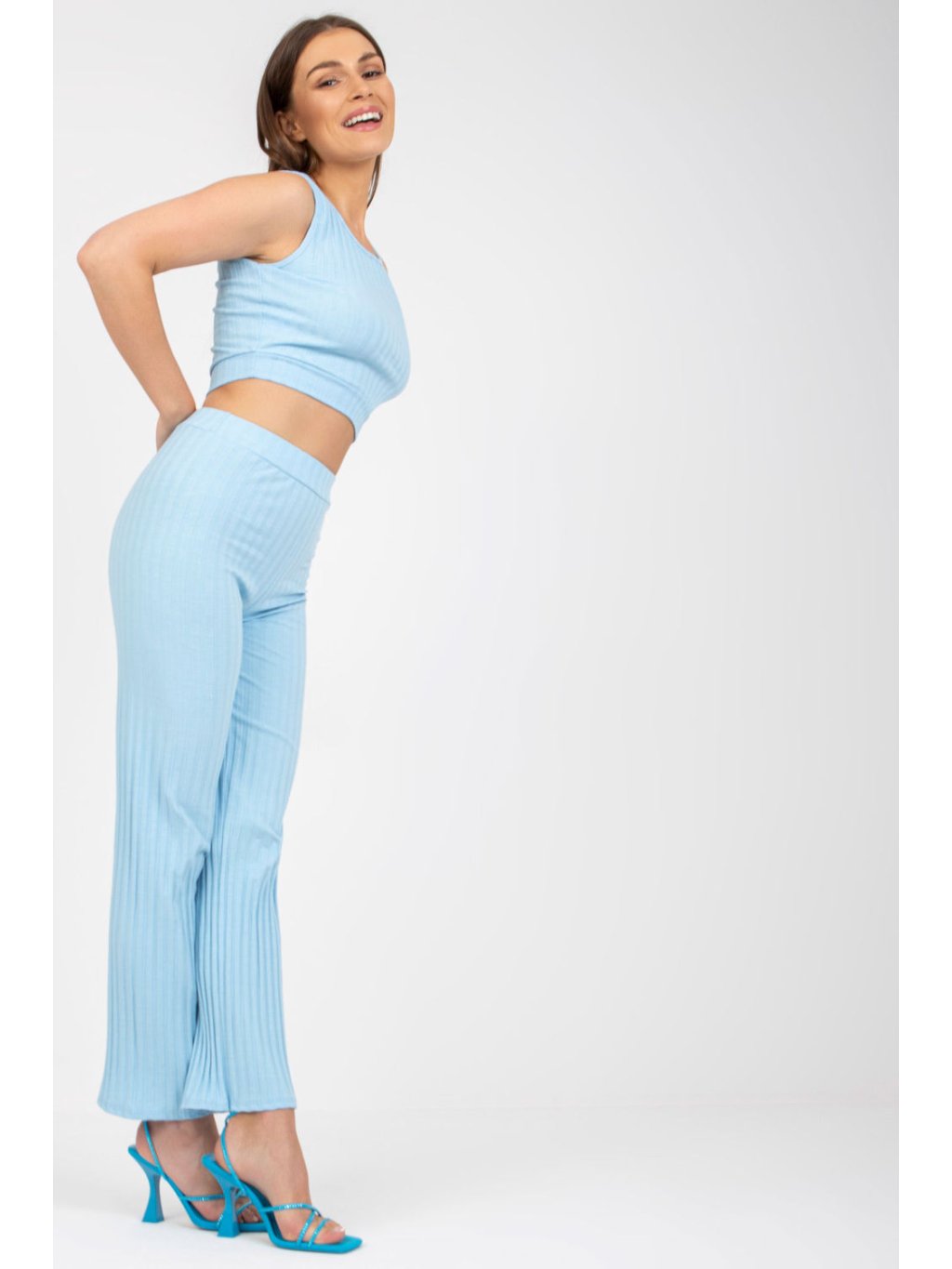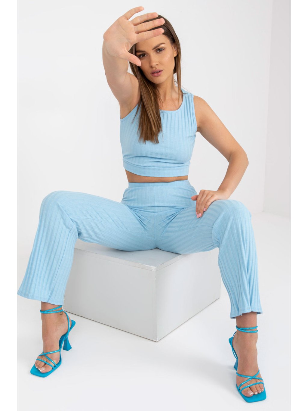 Souprava se skládá z topu a dlouhých kalhot. Krátký top s kulatým výstřihem. Dlouhé kalhoty s vysokým sedem a rovnými nohavicemi, v pase na gumu. Celek je vyroben ze široké žebrované tkaniny.