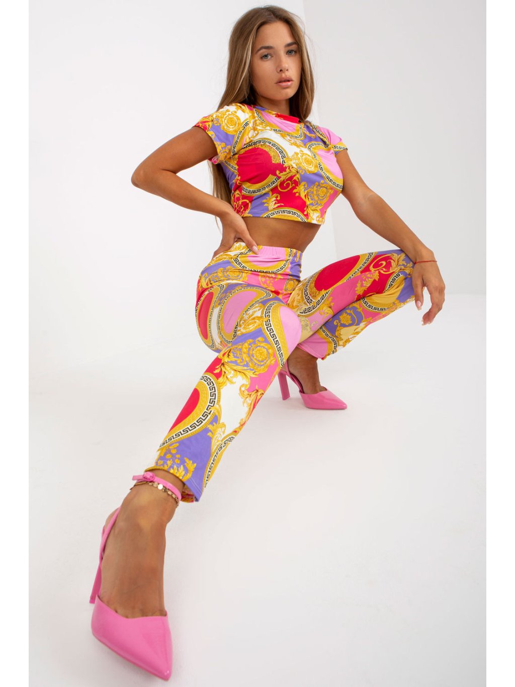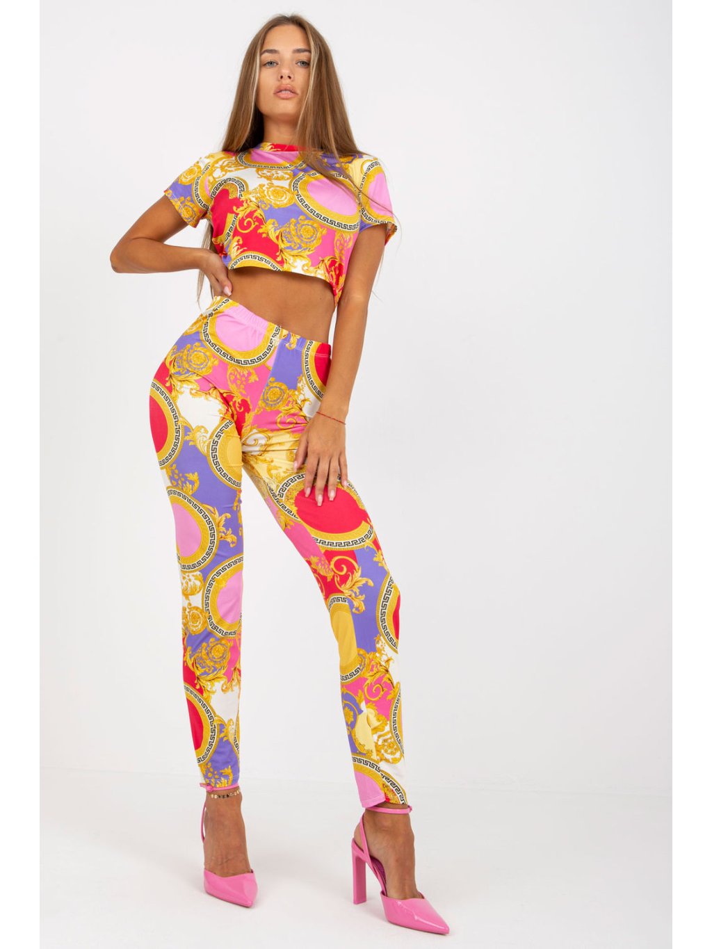 Letní souprava sestávající z trička a legín. Krátké tričko s krátkým rukávem. Legíny s vysokým pasem a zúženými nohavicemi.