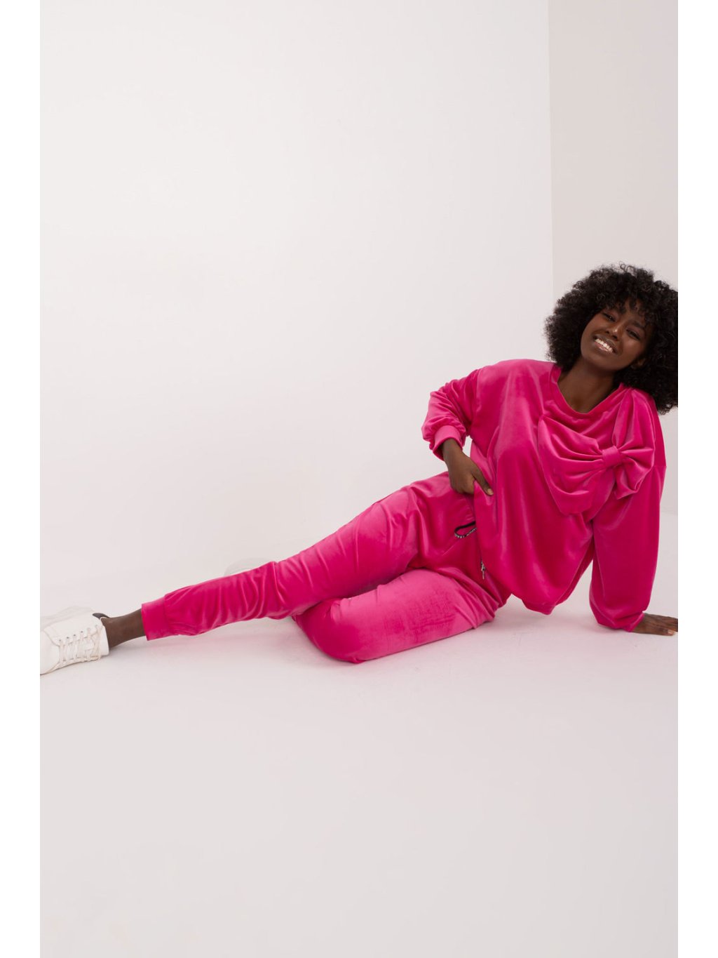 Souprava velurové mikiny a kalhot je ideální volbou pro ty, kteří ocení kombinaci pohodlí a ležérního stylu. Tato souprava, vytvořená pro každodenní aktivity, poskytuje nejen pohodlí při nošení, ale také módní vzhled. Dominantním materiálem je hladký polyester, který soupravě dodává elegantní povrch a zpříjemňuje nošení na pokožce. Díky standardní délce halenky a kalhot je souprava praktická a univerzální, ideální pro různé příležitosti. Nohavice kalhot jsou zakončeny žebrovanými lemy pro moderní, lehce sportovní vzhled. Kalhoty s vysokým pasem zdůrazňují siluetu a dodávají módní nádech. Boční kapsy na kalhotách jsou praktickým prvkem pro nošení drobných předmětů. Halenka s dlouhými rukávy a kulatým výstřihem je pohodlná a vhodná pro každodenní nošení. Dodatečný ozdobný prvek v podobě mašle na přední straně mikiny dodává soupravě jemný půvab a zvyšuje její atraktivitu. Tato souprava mikiny a kalhot kombinuje ležérní styl s moderním pohodlným střihem, takže je ideální volbou pro aktivní den plný pohodlí a módního vzhledu.