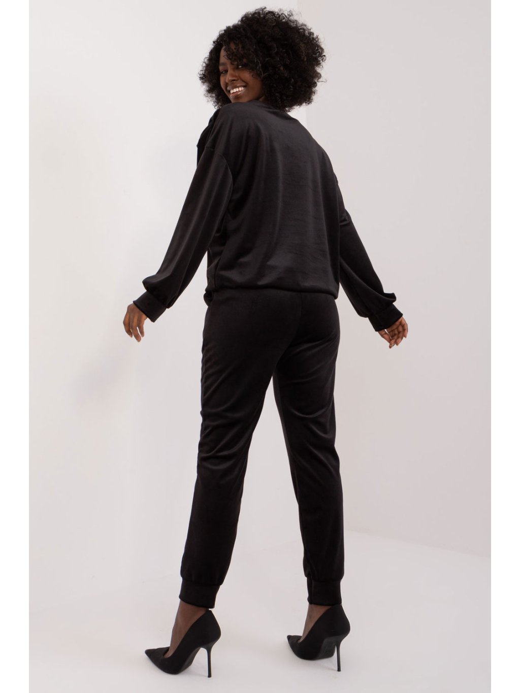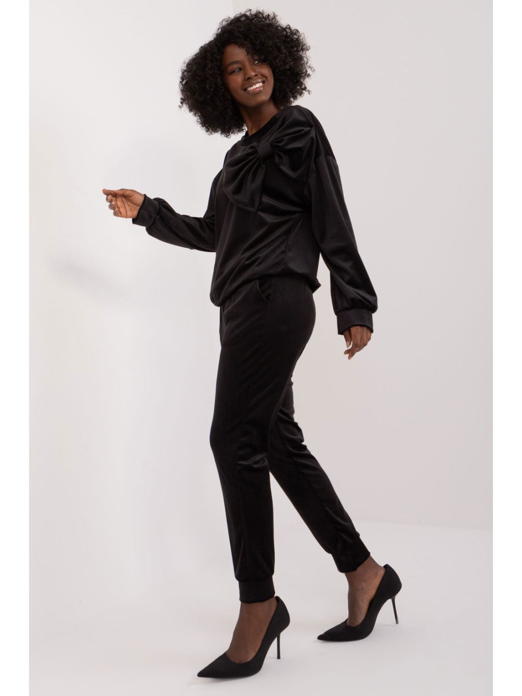 Souprava velurové mikiny a kalhot je ideální volbou pro ty, kteří ocení kombinaci pohodlí a ležérního stylu. Tato souprava, vytvořená pro každodenní aktivity, poskytuje nejen pohodlí při nošení, ale také módní vzhled. Dominantním materiálem je hladký polyester, který soupravě dodává elegantní povrch a zpříjemňuje nošení na pokožce. Díky standardní délce halenky a kalhot je souprava praktická a univerzální, ideální pro různé příležitosti. Nohavice kalhot jsou zakončeny žebrovanými lemy pro moderní, lehce sportovní vzhled. Kalhoty s vysokým pasem zdůrazňují siluetu a dodávají módní nádech. Boční kapsy na kalhotách jsou praktickým prvkem pro nošení drobných předmětů. Halenka s dlouhými rukávy a kulatým výstřihem je pohodlná a vhodná pro každodenní nošení. Dodatečný ozdobný prvek v podobě mašle na přední straně mikiny dodává soupravě jemný půvab a zvyšuje její atraktivitu. Tato souprava mikiny a kalhot kombinuje ležérní styl s moderním pohodlným střihem, takže je ideální volbou pro aktivní den plný pohodlí a módního vzhledu.