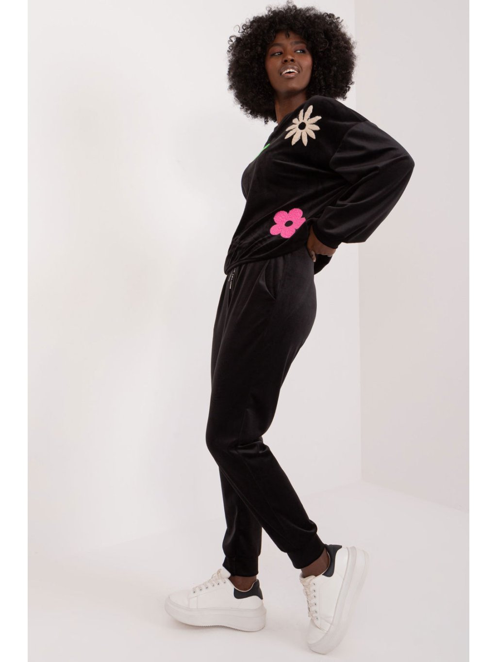 Velurová souprava, která se skládá z mikiny a kalhot, je kombinací elegance a pohodlí, ideální pro neformální chvíle odpočinku. Tato souprava, vytvořená s ohledem na pohodlí při nošení a módní vzhled, jistě upoutá pozornost svým jedinečným designem. Převažujícím materiálem je měkký polyester, který v kombinaci s velurovou úpravou poskytuje příjemný pocit na kůži. Soupravu zdobí na přední straně potisk květin, který jí dodává svěží a romantický nádech, ideální pro letní večery. Díky standardní délce halenky a kalhot je souprava praktická a univerzální. Stylizované žebrování na nohavicích kalhot dodává moderní, sportovní vzhled a zároveň umožňuje volnost pohybu. Kalhoty s vysokým pasem zvýrazňují pas, zatímco boční nakládané kapsy na kalhotách jsou praktické a stylové zároveň. Mikina s dlouhými rukávy a kulatým výstřihem je pohodlná a vhodná pro každodenní nošení. Celek vytváří harmonický obraz, v němž se snoubí elegance a ležérnost. Velurová souprava s květinovým potiskem je ideální volbou pro milovníky ležérního stylu s nádechem romantiky.