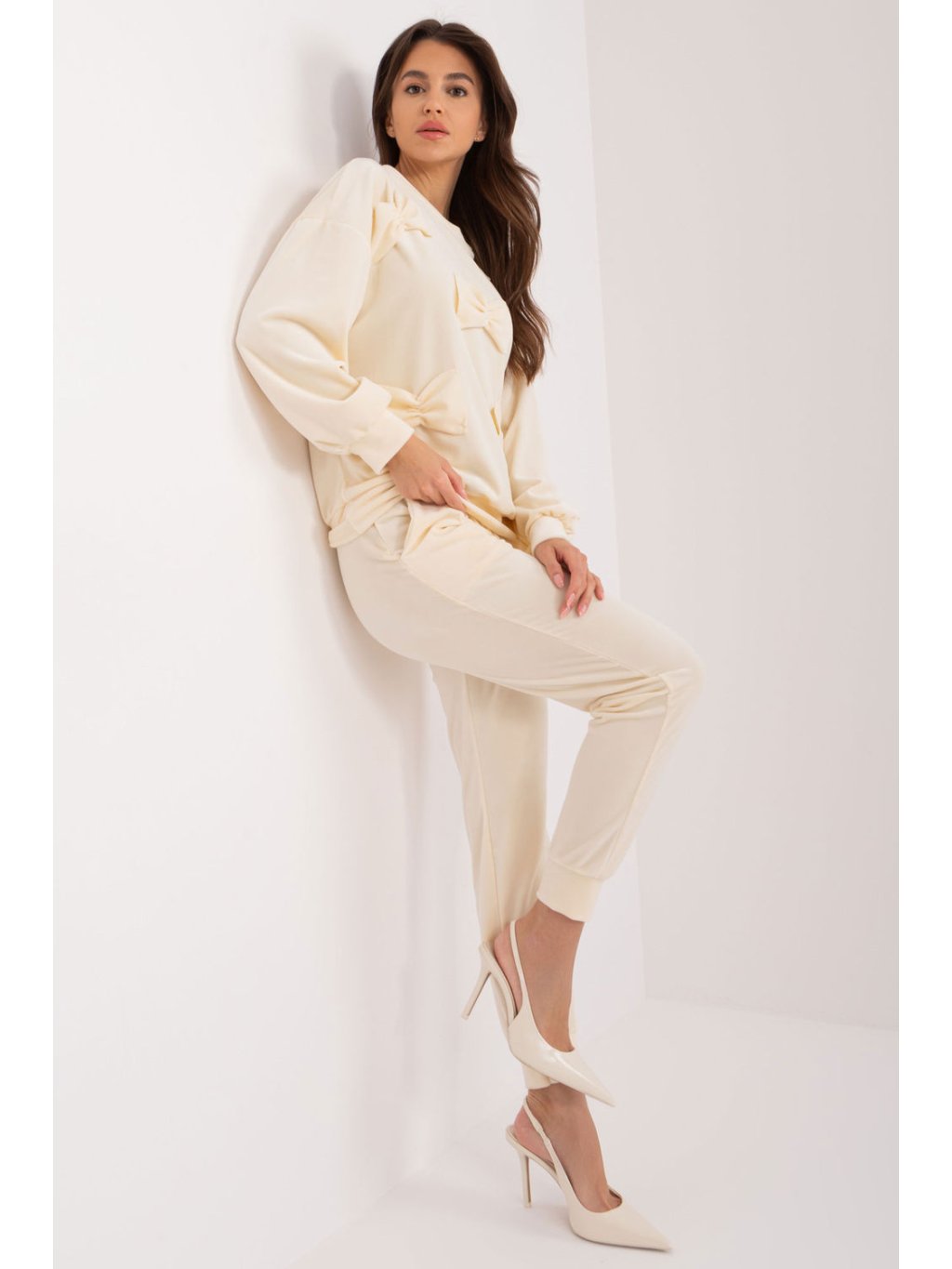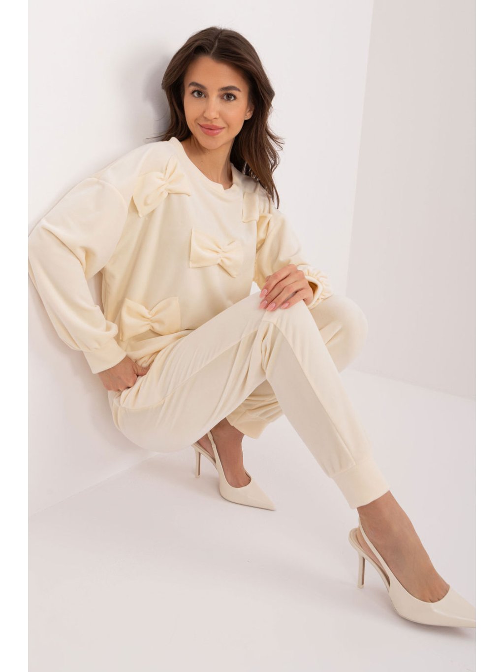 Ponořte se do pohodlného luxusu s naší jedinečnou velurovou soupravou, která se skládá z elegantní mikiny a kalhot. Tato souprava zaujme nejen příjemným velurovým materiálem, ale přidává také stylový nádech díky ozdobným mašličkám umístěným na přední straně mikiny. Ležérní styl této soupravy ji předurčuje pro volné dny a zároveň nabízí jedinečný výraz elegance. Hladký dominantní vzor dodává soupravě univerzálnost, díky níž ji lze snadno sladit s různými příležitostmi a stylizacemi. Dominantní materiál, vysoce kvalitní polyester, zaručuje nejen měkkost, ale i odolnost veluru, který je navíc příjemný na pokožce. Díky standardní délce halenky a kalhot si soupravu můžete užívat jak doma, tak při běžných procházkách nebo setkáních s přáteli. Kalhoty vybavené žebrovanými nohavicemi a vysokým pasem dodávají nejen pohodlí, ale také moderní nádech. Díky postranním kapsám na nohavicích jsou kalhoty praktické a zároveň stylové. Dlouhý rukáv halenky a kulatý výstřih dodávají soupravě jemný nádech. Velurový komplet je nejen symbolem pohodlí, ale také elegance v každodenním stylu. Díky ozdobným mašličkám se tato souprava stává originálním návrhem pro ty, kteří chtějí spojit pohodlí s módní rafinovaností.