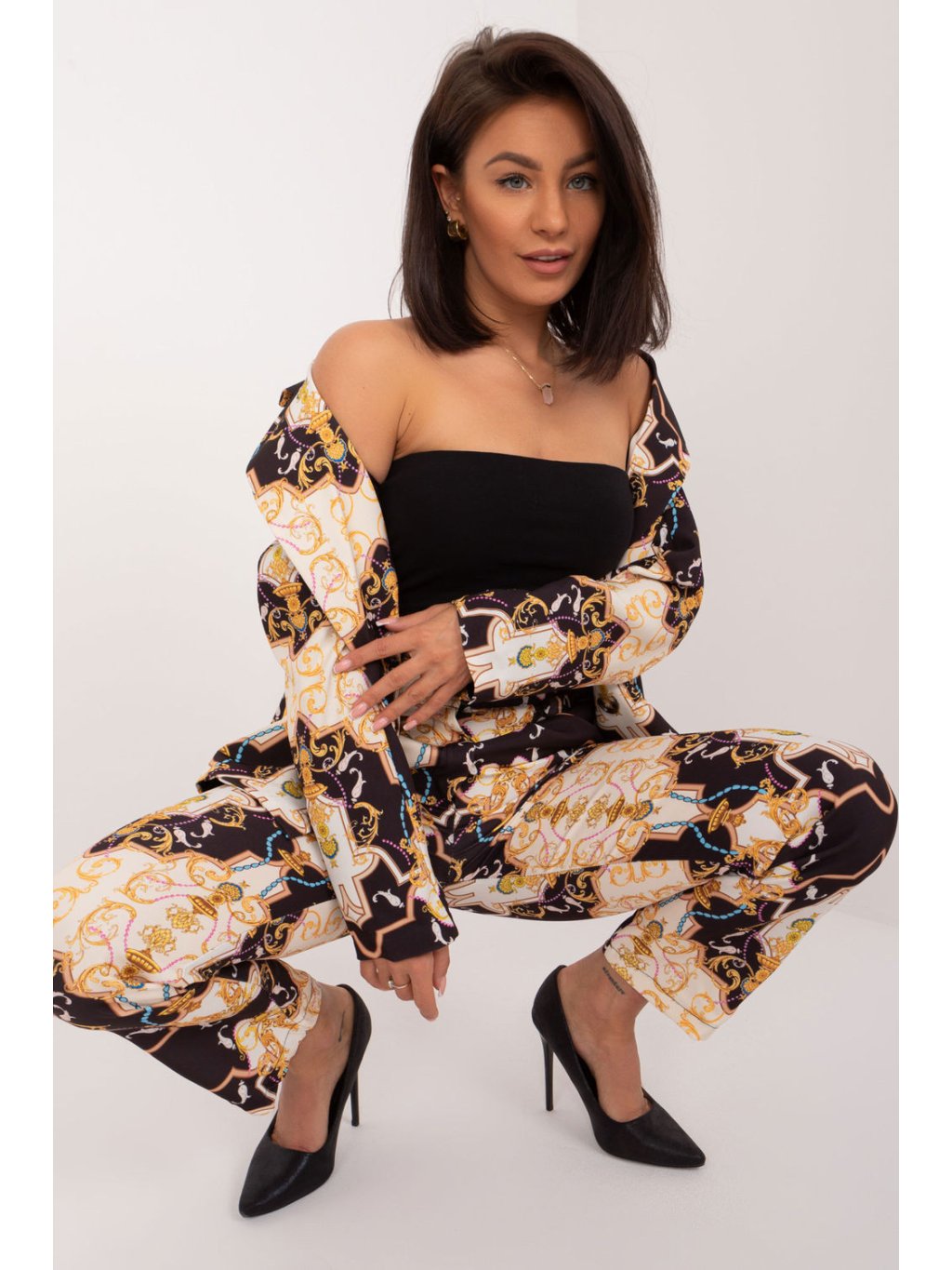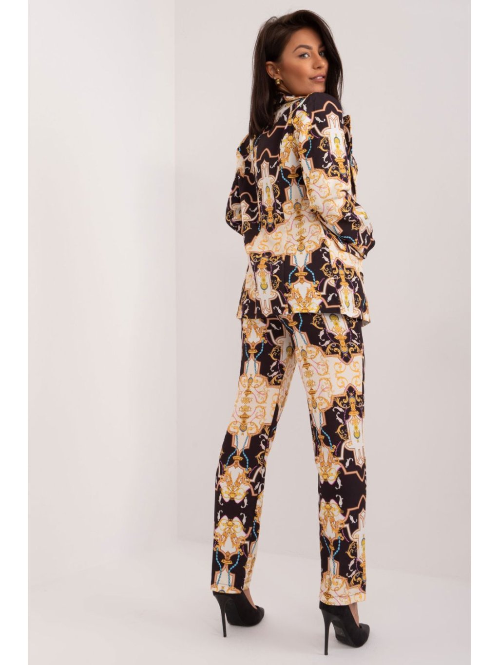 Tato elegantní dámská souprava je ideální pro různé příležitosti, od každodenního nošení v práci až po účast na večírku nebo obchodní schůzce. Skládá se ze saka s dlouhými rukávy a dlouhých kalhot se zapínáním na zip a knoflík. Sako je vyrobeno z vysoce kvalitního materiálu, který zaručuje eleganci a pohodlí při nošení. Zapíná se na knoflíky a klopy mu dodávají klasický nádech. Sako s podšívkou poskytuje pohodlí a lépe padne. Kalhoty mají rovné nohavice a vysoký pas, takže jsou nejen stylové, ale také pohodlné a dobře padnoucí. Zapínání na zip a knoflík zajišťuje snadné oblékání a odolnost. Soupravu zdobí potisk, který jí dodává originalitu a charakter. Díky standardní délce a rovným nohavicím ji lze snadno kombinovat s různými kousky oblečení a vytvářet tak různé styly. Jako bonus jsou na kalhotách praktické postranní kapsy, které dodávají této soupravě utilitární nádech. Díky kvalitnímu zpracování a elegantnímu designu bude tato dámská souprava jistě skvělou volbou pro mnoho různých příležitostí.
