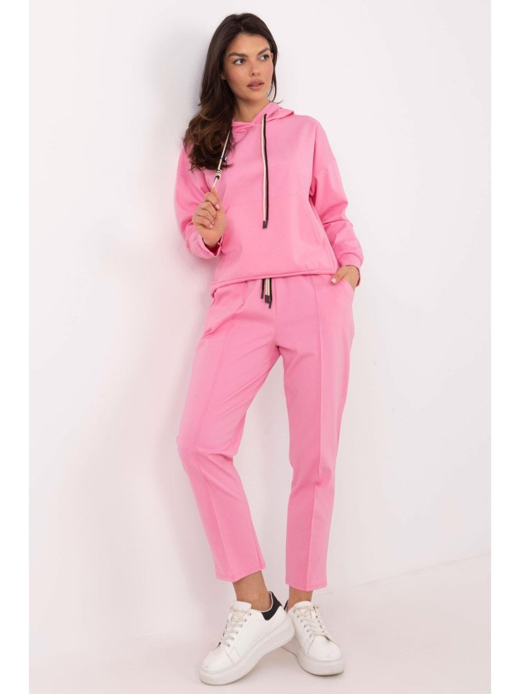 Dámský teplý set je ideální volbou na každý den, kombinující pohodlí a styl v casualovém provedení. Sestava se skládá z mikiny s dlouhým rukávem a dlouhých kalhot. Oba kusy jsou vyrobeny z příjemného materiálu, který je směsí viskózy, polyesteru a elastanu, což zajišťuje pohodlí nošení a odolnost. Mikina má kapuci, která dodává sportovní charakter, a jemnou aplikaci v podobě medvídka na přední straně, což je roztomilý detail. Kalhoty mají praktické boční kapsy a elastické šňůrky vysoko na pasu, což umožňuje přizpůsobení postavě. Nohavice jsou zakončeny stylovými manžetami, zdůrazňujícími casualový vzhled celého setu. Tepláková souprava v jednobarevném, hladkém designu se skvěle hodí na každodenní aktivity, poskytující pohodlí a módní vzhled. Ideální na procházky, relaxaci doma nebo neformální výlety.