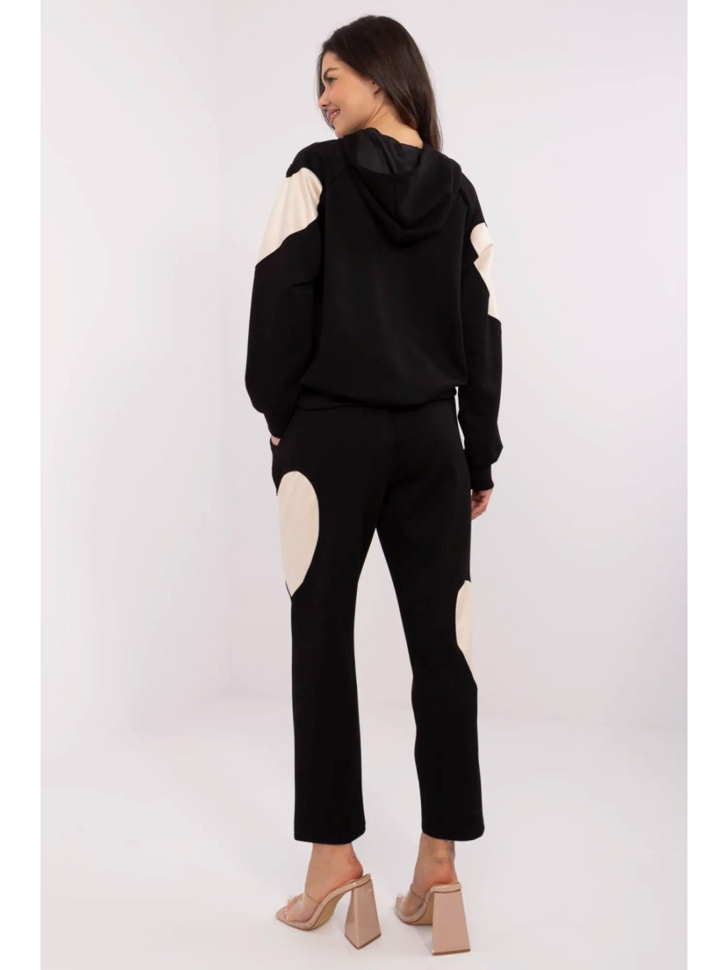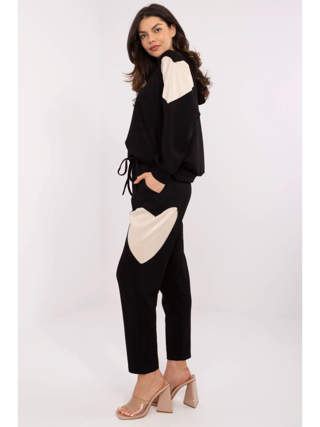 Dámský teplý set je ideální kombinací pohodlí a stylu na každý den. Skládá se z mikiny s kapucí a kalhot s vysokým pasem, které se skvěle přizpůsobí postavě. V pasu je praktické šňůrování, které umožňuje nastavení obvodu. S jak mikina, tak kalhoty mají jednoduchý, minimalistický střih, který se hodí do každodenních stylizací. Dlouhé nohavice a rukávy zajišťují pohodlí při nošení a boční kapsy přidávají funkčnost. Materiál z polyesteru, bavlny a elastanu je měkký, příjemný na dotek a dobře padne na tělo. Hladký vzor oživují jemné srdcové nášivky umístěné na rukávech a nohavicích, dávají celku výjimečný charakter. Je to skvělá volba pro každodenní aktivity, relaxaci doma nebo pro procházku.
