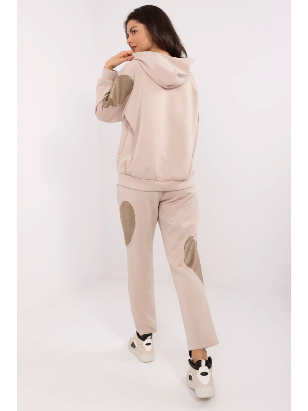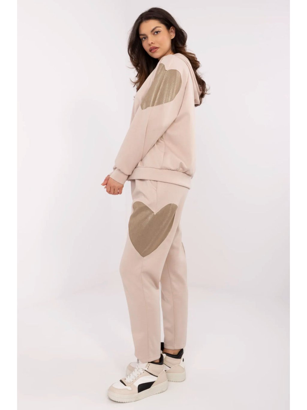 Dámská tepláková souprava je ideální kombinací pohodlí a stylu na každý den. Skládá se z mikiny s kapucí a kalhot s vysokým pasem, které se perfektně přizpůsobí postavě. V pasu je praktické šněrování, které umožňuje regulaci obvodu. Jak mikina, tak kalhoty mají jednoduchý, minimalistický střih, který se hodí do každodenních stylizací. Dlouhé nohavice a rukávy zajistí pohodlné nošení a boční kapsy dodají funkčnost. Materiál z polyesteru, bavlny a elastanu je měkký, příjemný na dotek a dobře padne na tělo. Hladký vzor oživují jemné srdcové aplikace na rukávech a nohavicích, které dodávají celku výjimečný charakter. Skvělá volba pro každodenní aktivity, relaxaci doma nebo pro procházku.
