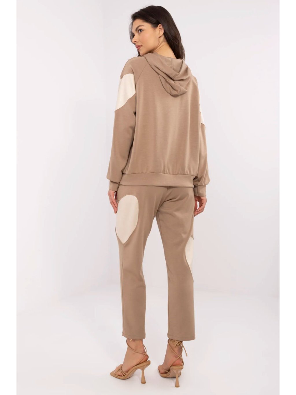 Dámská tepláková souprava je ideální kombinací pohodlí a stylu na každý den. Skládá se z mikiny s kapucí a kalhot s vysokým pasem, které skvěle padnou. V pasu je praktické šňůrkování, které umožňuje nastavení obvodu. Jak mikina, tak kalhoty mají jednoduchý, minimalistický střih, který se hodí do každodenních outfitů. Dlouhé nohavice a rukávy zajišťují pohodlné nošení a boční kapsy přidávají funkčnost. Materiál z polyesteru, bavlny a elastanu je měkký, příjemný na dotek a dobře padne na tělo. Hladký vzor oživují jemné srdíčkové nášivky na rukávech a nohavicích, dávající celku výjimečný charakter. Je to skvělá volba pro každodenní aktivity, relaxaci doma nebo pro procházku.