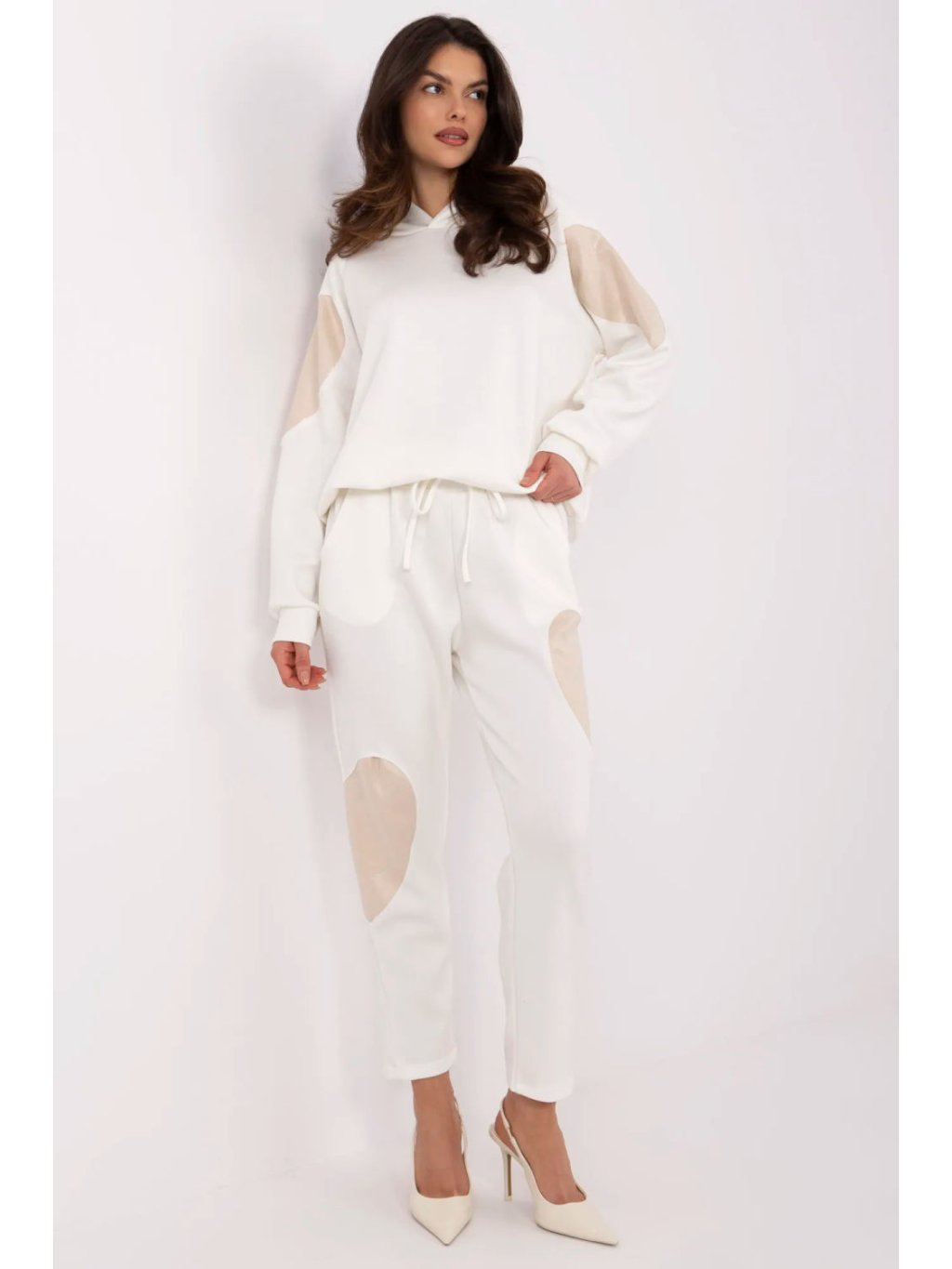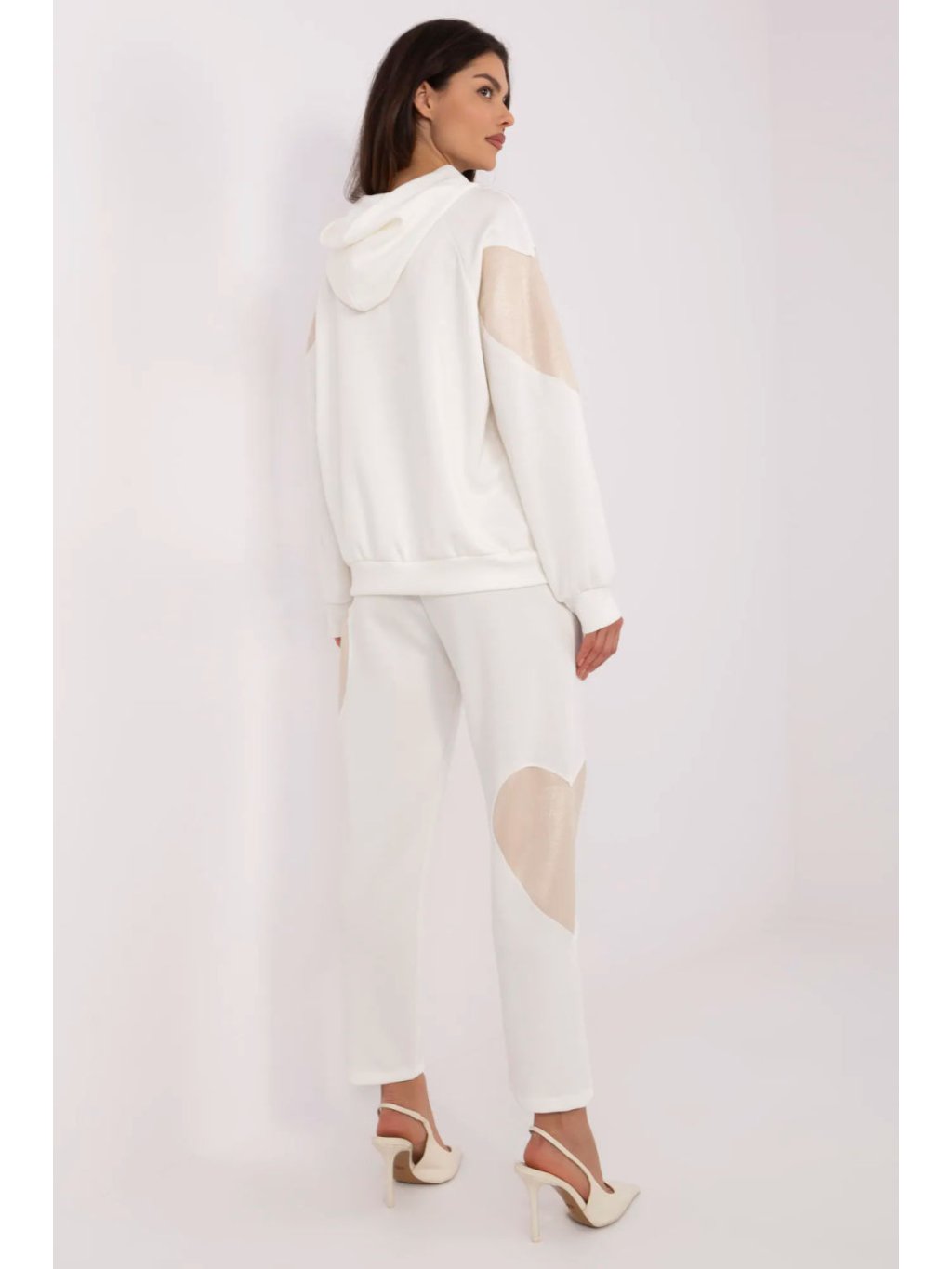 Dámský teplý set je ideální kombinací pohodlí a stylu na každý den. Skládá se z mikiny s kapucí a kalhot s vysokým pasem, které skvěle padnou k postavě. V pasu je praktické šňůrkování, které umožňuje regulaci obvodu. S jak mikina, tak kalhoty mají jednoduchý, minimalistický střih, který se hodí do každodenních outfitů. Dlouhé nohavice a rukávy zaručují pohodlí při nošení, a boční kapsy přidávají funkčnost. Materiál z polyesteru, bavlny a elastanu je měkký, příjemný na dotek a dobře padne na tělo. Hladký vzor ozvláštní jemné srdcové aplikace umístěné na rukávech a nohavicích, které dávají celku výjimečný charakter. Je to skvělá volba na každodenní aktivity, relaxaci doma nebo procházku.