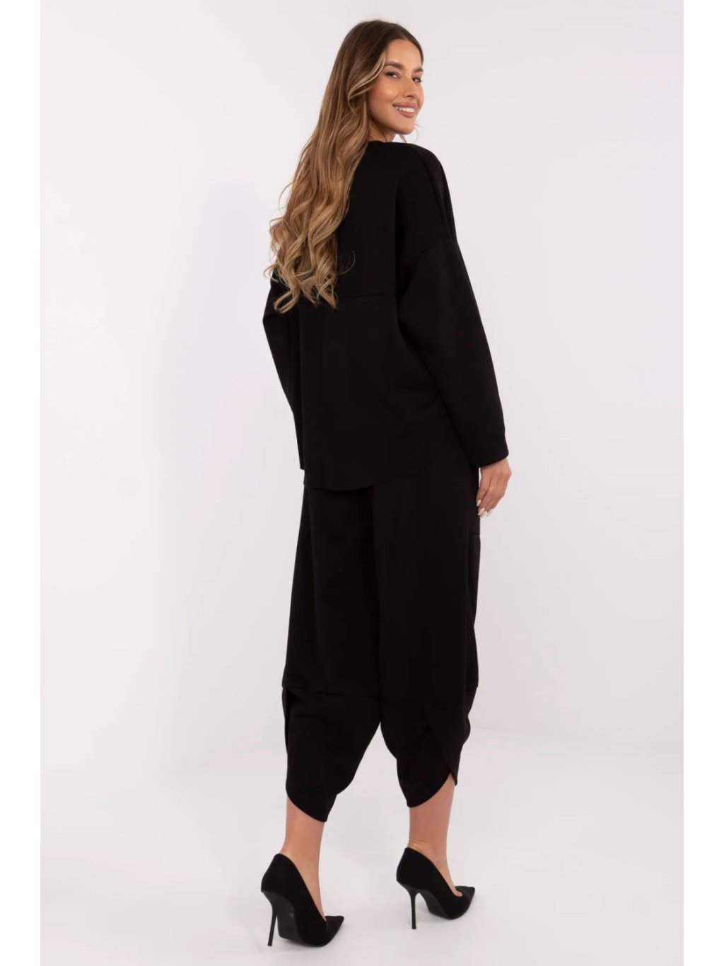Dámský teplákový set je skvělou volbou pro ženy, které ocení pohodlí a styl v každodenním životě. Vyrobený z vysoce kvalitní směsi viskózy, bavlny a elastanu, poskytuje pohodlí a skvěle padne k postavě. Mikina s dlouhým rukávem a kulatým výstřihem se vyznačuje decentním nášivkem dole, dodávajícím celku módní nádech. Kalhoty s délkou 7/8 a vysokým pasem zdůrazňují pas, a otevřené, přišité kapsy zajišťují funkčnost. Hladký vzor a ležérní styl zaručují, že set bude skvěle vypadat v každodenních outfitech, ať už doma, na procházce nebo při nákupech.