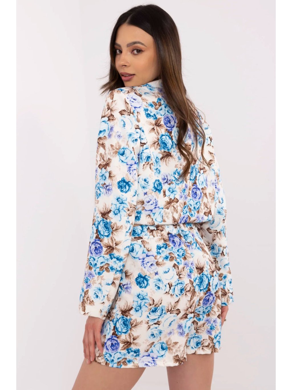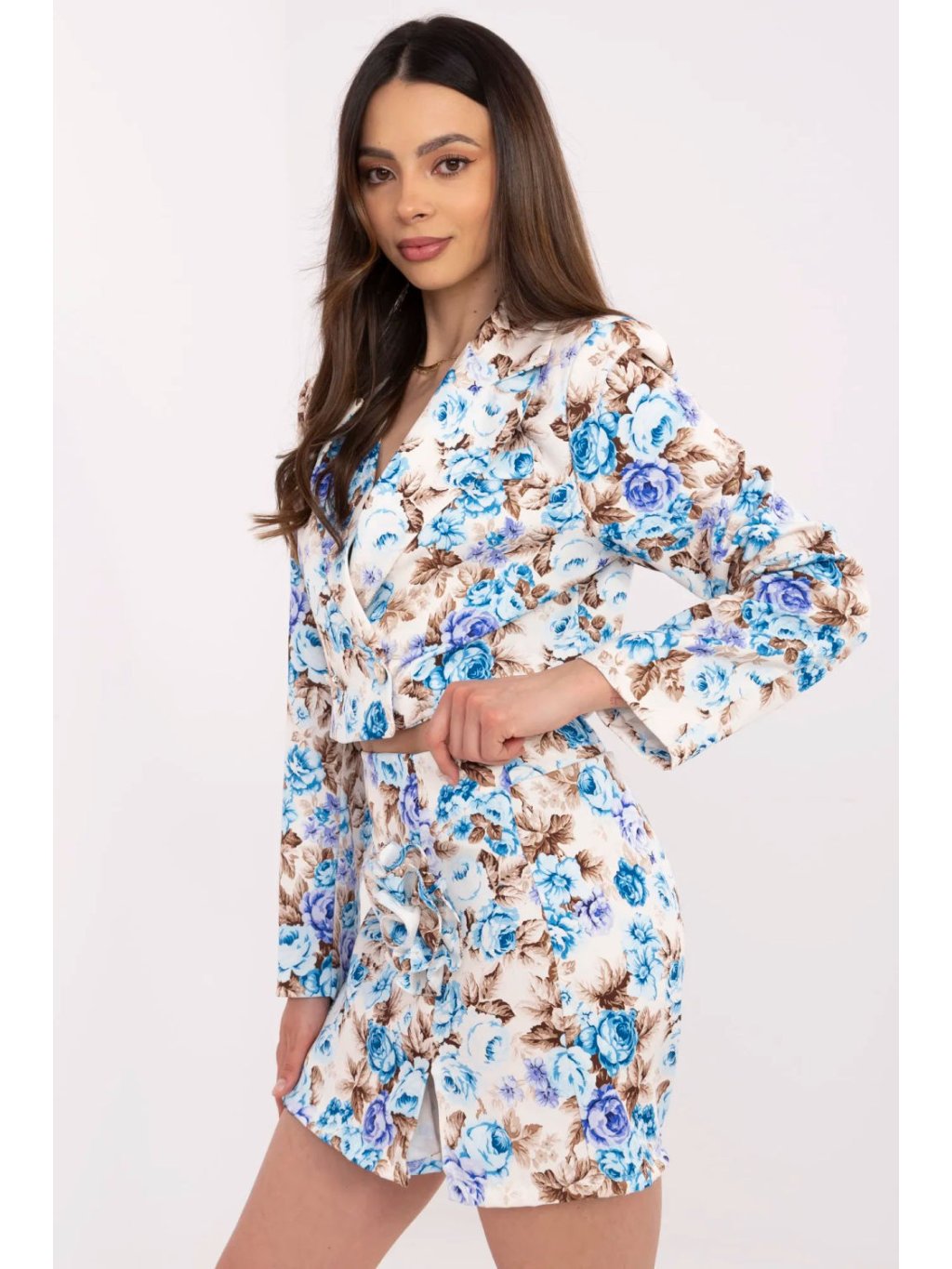Výjimečný dámský komplet spojující eleganci s dívčím šarmem, krátká sako a sukňové šortky v módním květinovém vzoru jsou ideální volbou na každý den, do práce, na návštěvní setkání nebo na akce. Sako s kratším střihem, klopovými límci a dvouřadým zapínáním krásně zdůrazňuje pas, zatímco podšívka zajišťuje pohodlné nošení. Ozdobná, odnímatelná brož dodává celkovému vzhledu eleganci a umožňuje jemné přizpůsobení stylizace příležitosti. Sukňové šortky s vysokým pasem kombinují vzhled klasické sukně s komfortem šortek. Vzadu všitá guma v pase zajišťuje dokonalé přizpůsobení a pohodlí po celý den, i během intenzivnějších aktivit. Absence kapes udržuje hladkou linii siluety. Komplet vyrobený z vysoce kvalitní směsi polyesteru a elastanu vypadá lehce a žensky, a zároveň je pohodlný a praktický.