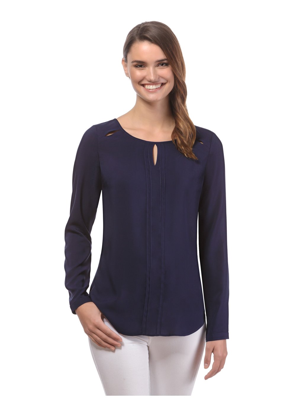 Stylová dámská halenka Vincenzo Boretti s lodičkovým výstřihem, dlouhý rukáv na knoflíčky,splývavá látka s příjemně měkkým omakem.