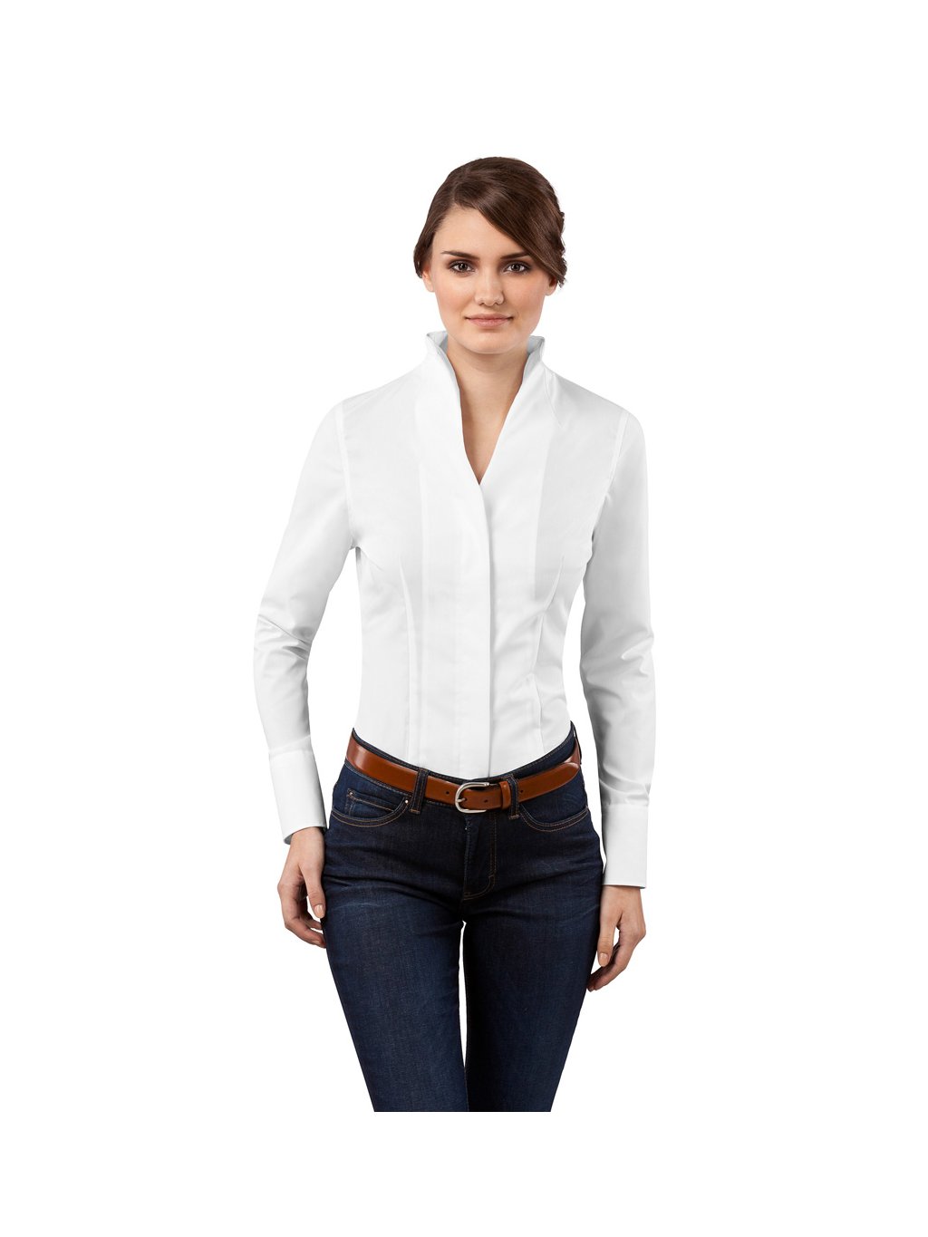 Stylová dámská košile Vincenzo Boretti se stojatým límcem, dlouhý rukáv, véčkový výstřih, kryté zapínání na knoflíčky. střih MODERN FIT. Italský design, značka Vincenzo Boretti zaručuje prvotřídní kvalitu.