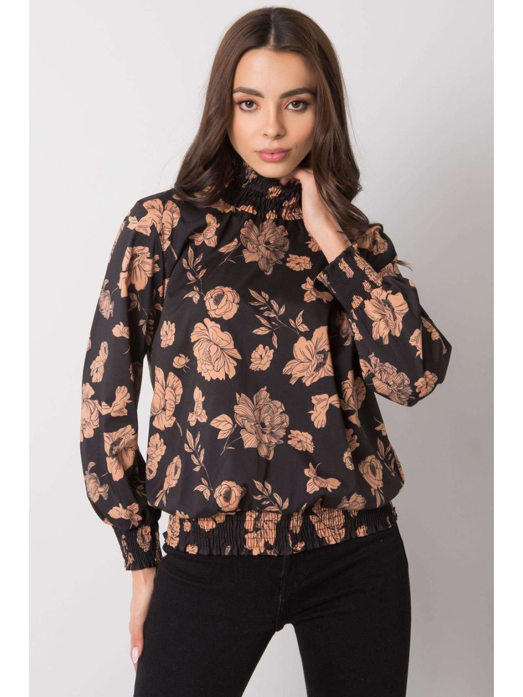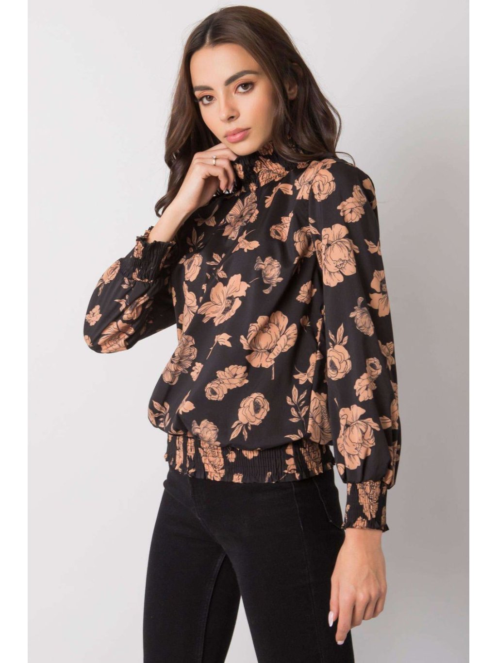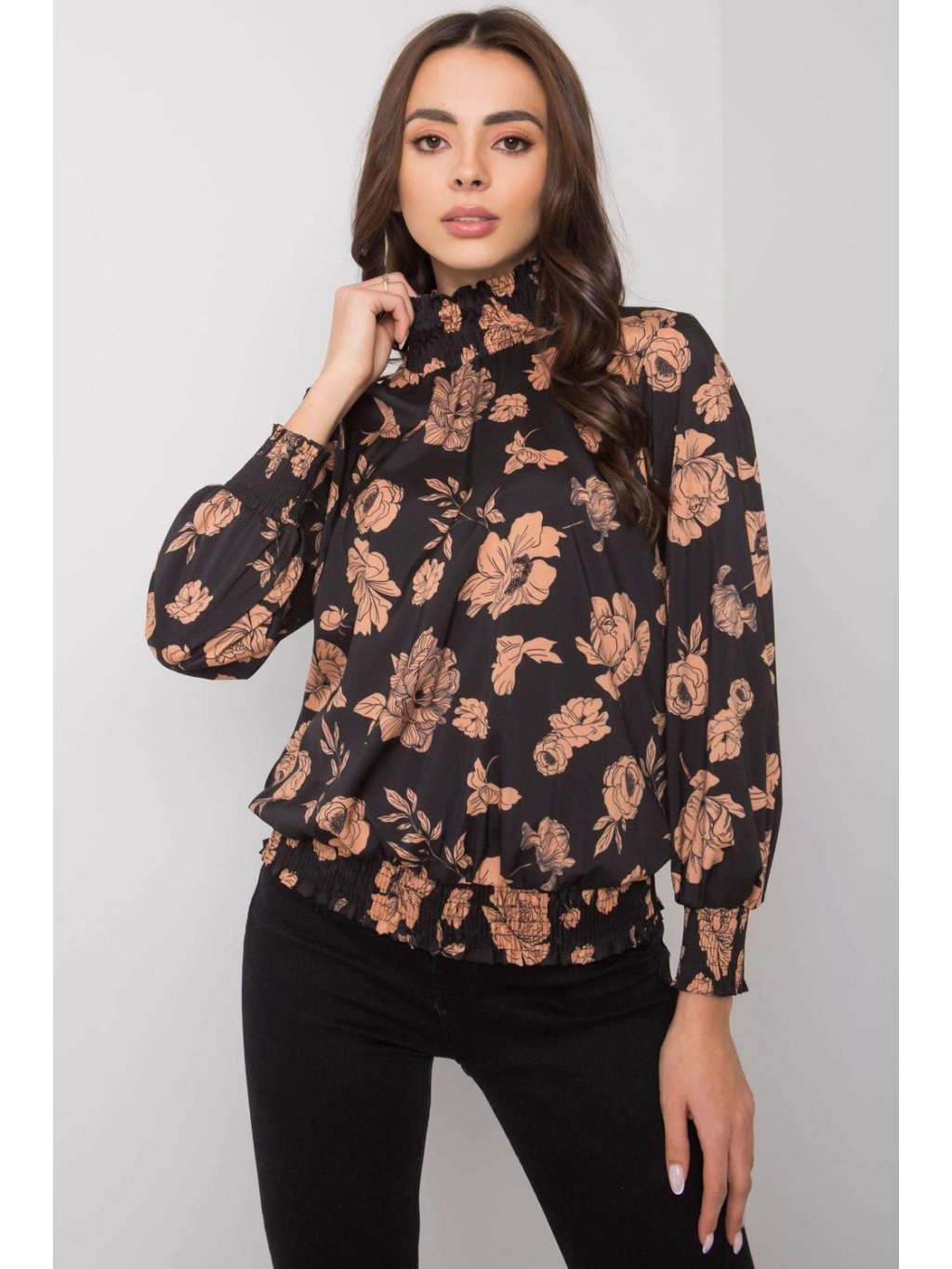 Černo-kamenná květinová halenka s dlouhými rukávy.