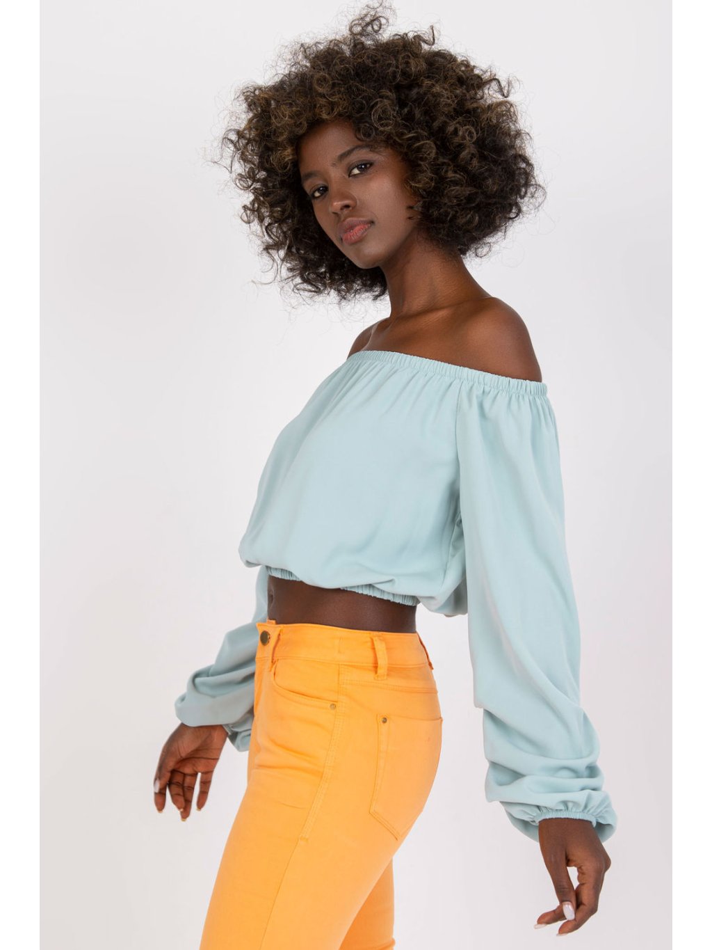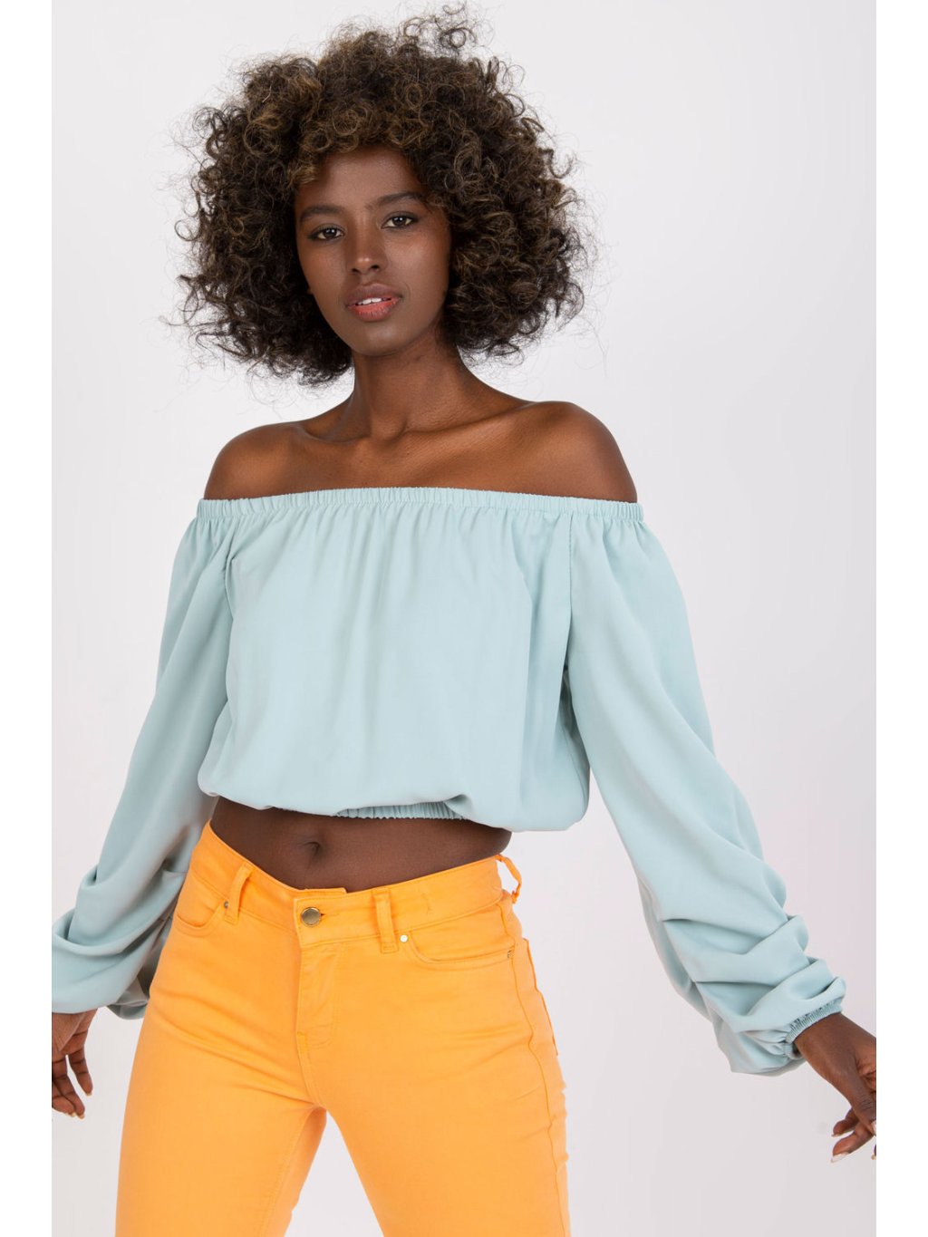 Halenka se střihem odhalujícím ramena a s dlouhými širokými rukávy. Ideální na léto.