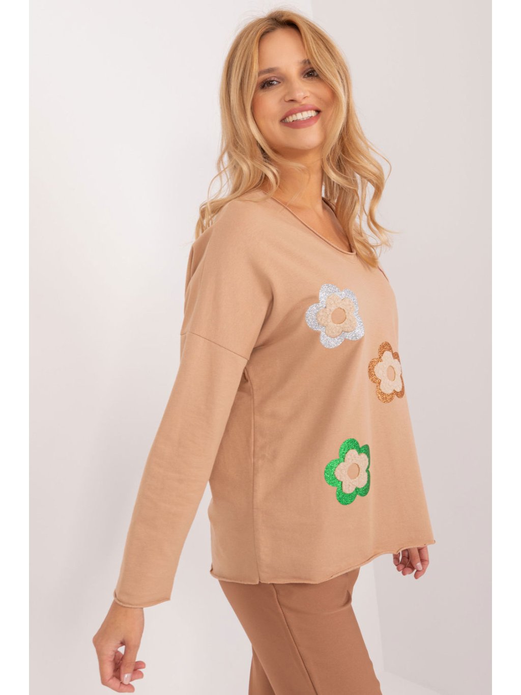 Představujeme jedinečnou halenku pro volný čas, která dokonale kombinuje pohodlí a styl. Tento oděv je ideální pro každodenní nošení a zároveň poskytuje decentní ležérní vzhled. Halenka zaujme svým převládajícím vzorem, přičemž přední stranu zdobí půvabné květy, které celému vzhledu dodávají lehký a svěží nádech. Tyto aplikace dělají z halenky nejen oděv, ale také vyjádření individuálního stylu. Halenka je vyrobena z vysoce kvalitní bavlny, která zaručuje maximální pohodlí při nošení. Díky použitému materiálu je oděv měkký, prodyšný a ideální pro různá roční období, což poskytuje příjemný pocit i při dlouhodobém nošení. Díky standardní délce halenky a dlouhým rukávům je skvělou volbou pro nejrůznější příležitosti ? ať už na setkání s přáteli, běžné nákupy nebo relaxační procházku. Výstřih do V dodává halence lehkost a jemnou eleganci, což z ní činí dokonalý kousek šatníku pro každou ženu, která si cení pohodlí a stylu. Ležérní halenka s květinovým motivem je určena pro ty, které chtějí spojit ležérnost s módní rafinovaností.