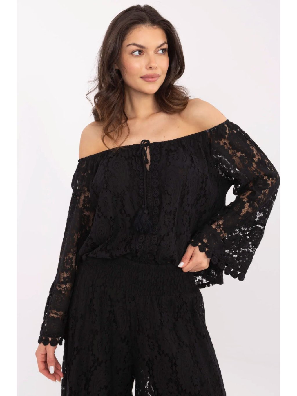 Elegantní blůza z krajkové krajky je ženskou a stylovou volbou pro mnoho příležitostí, od každodenního stylu po více formální výlety nebo večírky. Vyrobená z vysoce kvalitní směsi bavlny a nylonu s jemnou podšívkou poskytuje pohodlí a efektní dokončení. Krátká délka a španělský výstřih krásně zdůrazňují ramena, čímž celku dodávají smyslný charakter. Dlouhé rukávy z jemné krajky dodávají lehkost a šněrování vpředu zdůrazňuje pas a vnesuje do outfity romantický akcent. Blůza skvěle ladí jak s elegantními kalhotami, tak s sukní ideální na schůzky, do práce nebo večerní výlety. Jedná se o kombinaci elegance a moderního stylu, která vždy udělá dojem.