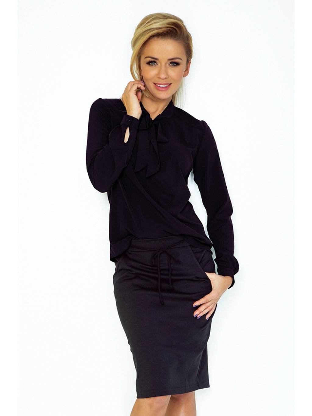 Blůza s dlouhými rukávy v černé barvě. Ozdobné zavazování vpředu. Skvěle se hodí pro mnoho příležitostí.