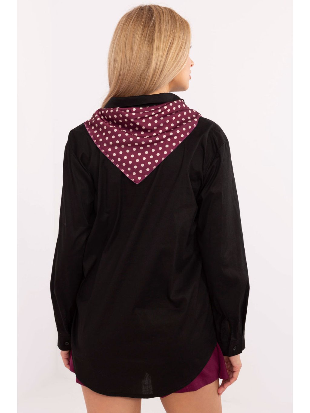 Elegantní dámská košile klasického střihu, ideální na formální události, do práce nebo na každý den, kdy chcete vypadat stylově a profesionálně. Košile je ušita z vysoce kvalitní bavlny s přídavkem elastanu, co zajišťuje pohodlí nošení a perfektní přizpůsobení. Model s klasickým límečkem a zapínáním na knoflíky je esencí nadčasové elegance. Dlouhý rukáv umožňuje nosit košili v jakémkoli ročním období. Hladká textura materiálu jí dodává minimalistický šarm, který lze snadno sladit s různými stylizacemi. Výjimečným prvkem je odnímatelný šátek, který umožňuje jemné oživení stylizace. Můžete ho nosit podle příležitosti, s šálkem pro elegantnější efekt nebo bez něj pro jednodušší vzhled. Jedná se o skvělý návrh pro ženy, které oceňují klasiku s nádechem všestrannosti.