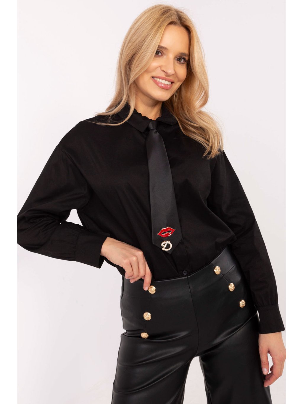 Klasická dámská košile s volným střihem, skvělá na každý den. Vyrobena z kombinace bavlny a elastanu, poskytuje pohodlí a skvělé přizpůsobení postavě. Hladký materiál dělá z košile všestrannou základnu pro různé styly. Model má klasický límec a zapínání na knoflíky, co mu dodává nadčasový charakter. Standardní délka a dlouhý rukáv dělají z košile praktickou volbu na každé roční období. Speciální prvky, jako je odnímatelná kravata a odnímatelná brož, umožňují personalizaci a přizpůsobení košile různým příležitostem. Přidejte kravatu a brož, abyste zdůraznili originální styl, nebo je sundejte pro volnější vzhled. Ideální pro ženy, které oceňují klasickou eleganci s ležérním akcentem.