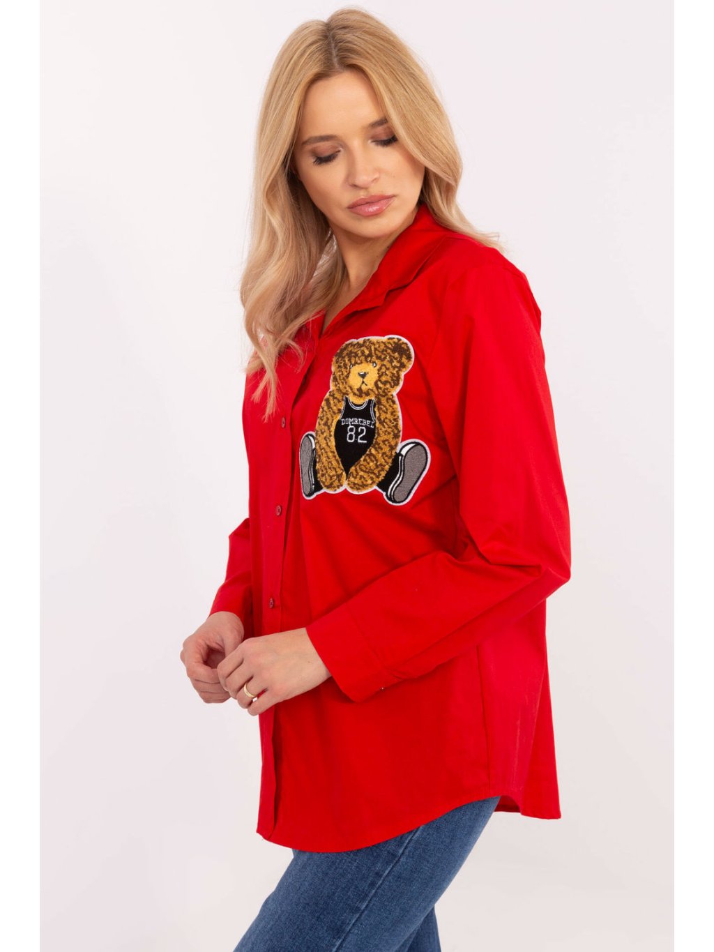 Košile pro ženy Casual je stylovým návrhem na každý den, který kombinuje klasiku s roztomilým detaily. Vyrobená z vysoce kvalitní směsi bavlny a elastanu, poskytuje pohodlí a skvělé padnutí, zároveň umožňuje pokožce dýchat. Hladký materiál a minimalistický design dělají z košile univerzální kus oblečení. Na přední straně upoutá pozornost nasazenka ve tvaru medvídka, která dodává celkovému vzhledu originalitu a lehkost, ideální pro casual styl. Standardní délka modelu s klasickým límcem a dlouhými rukávy s manžetami je harmonickou kombinací elegance a volnosti. Zapínání na knoflíky, košile se skvěle hodí do každodenních outfitů do práce, na schůzky nebo výlety do města. Stačí ji zkombinovat s oblíbenými džíny nebo chinosy, abyste vytvořili módní a zároveň pohodlný look s nádechem originality.