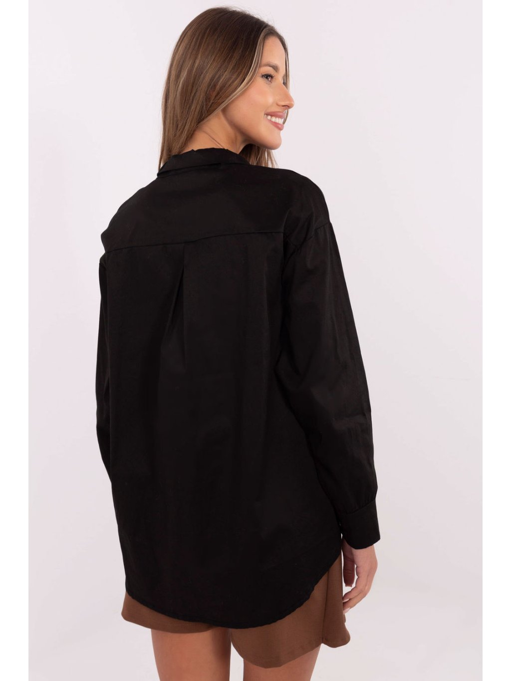 Klasická dámská košile s volným střihem, skvělá na každý den. Vyrobená z kombinace bavlny a elastanu, poskytuje pohodlí a ideální přizpůsobení postavě. Hladký materiál činí košili všestrannou základnou pro různé stylizace. Model má klasický límeček a zapínání na knoflíky, co mu dodává nadčasový charakter. Standardní délka a dlouhý rukáv dělají z košile praktickou volbu na každé roční období. Výjimečné prvky, jako je odnímatelná kravata a odpínatelná brož, umožňují personalizaci a přizpůsobení košile různým příležitostem. Přidejte kravatu a brož, abyste zdůraznili originální styl, nebo je sundejte pro volnější vzhled. Ideální pro ženy, které oceňují klasickou eleganci s ležérním akcentem.