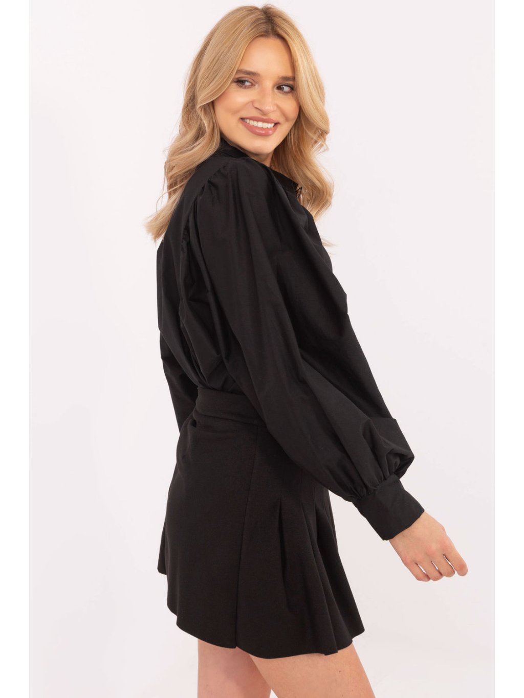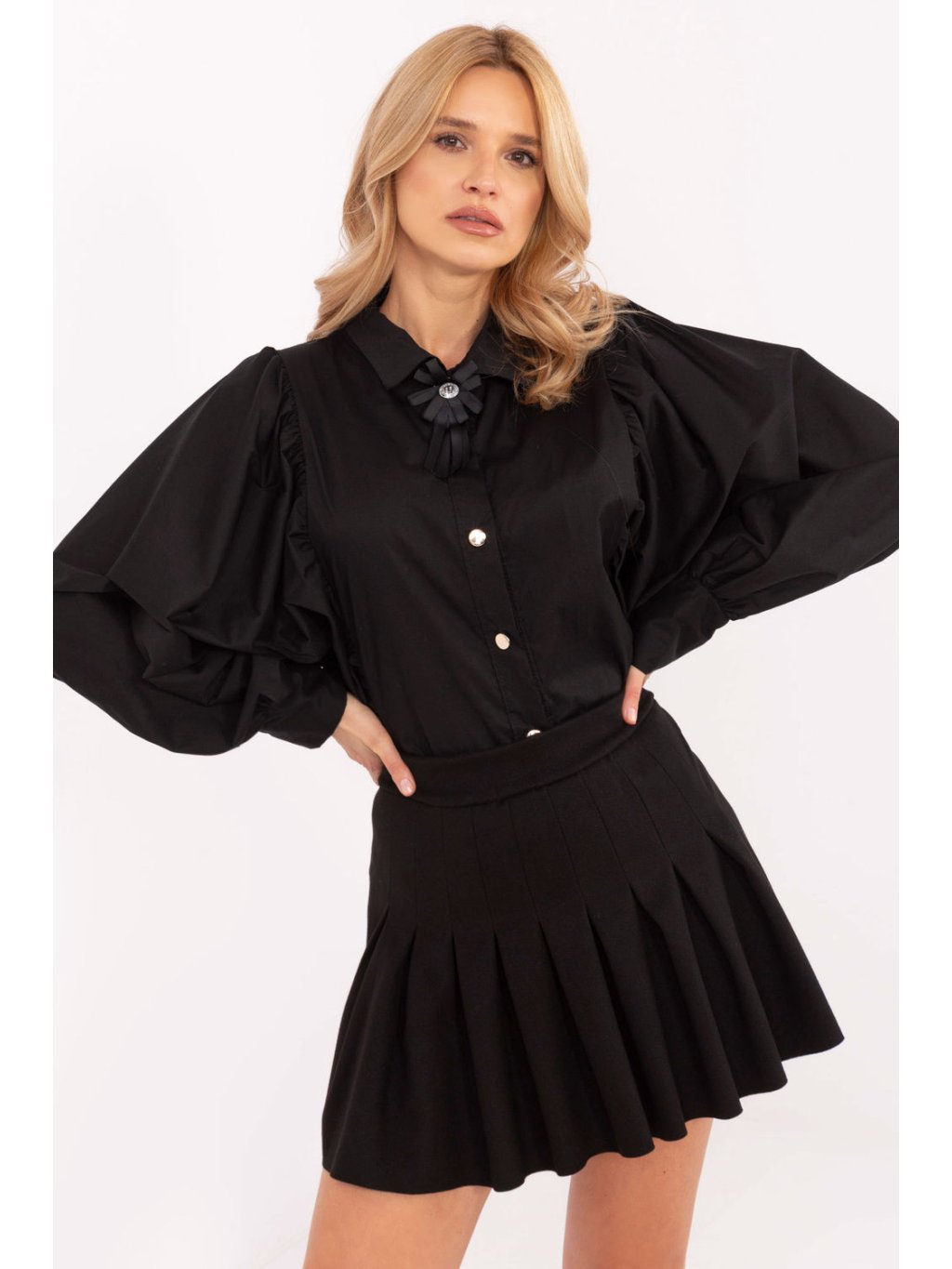 Klasická dámská košile je kvintesencí elegance a stylu, ideální na formální příležitosti i do práce. Vyrobená z kombinace polyesteru, viskózy a elastanu, poskytuje pohodlí nošení a elegantní vzhled. Hladký vzor zdůrazňuje minimalistický charakter, což jí dodává univerzálnost. Standardní délka, dlouhý rukáv a klasický límeček dělají z košile vhodný k mnoha formálním stylizacím. Dekorativní záhyby a nadýchané rukávy přidávají jemný šarm, zatímco odnímatelná brož dodává stylový akcent, který lze přizpůsobit různým příležitostem. Zapínání na knoflíky dokončuje klasický vzhled této výjimečné košile.