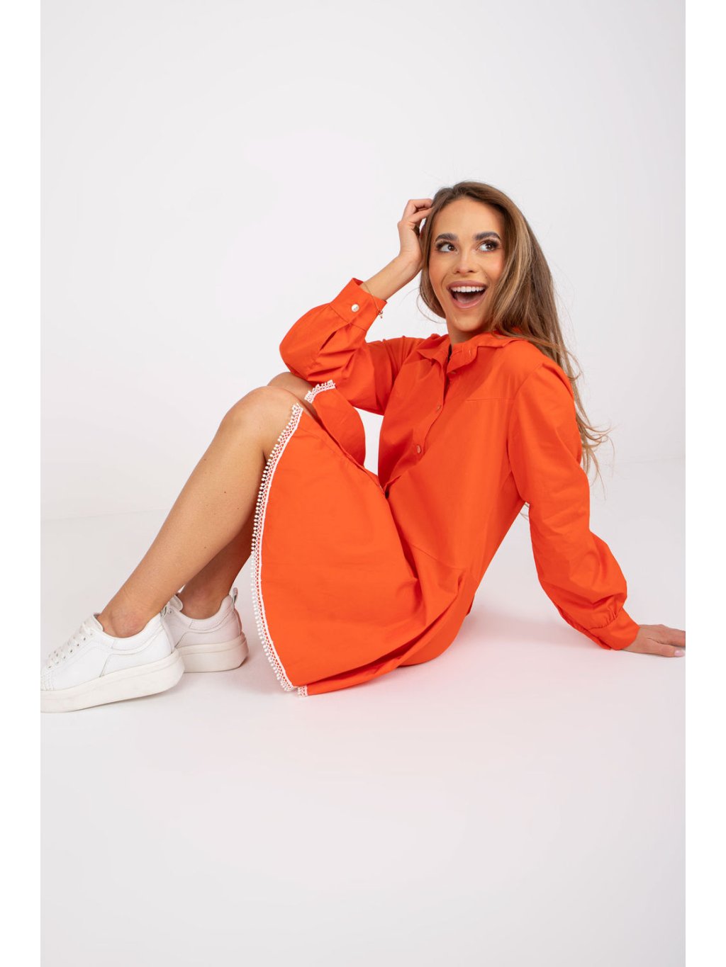 Šedé šaty s dlouhými rukávy a zapínáním na knoflíky. Spodní část je rozšířená, zdobená ozdobnou stuhou. Ideální pro mnoho příležitostí.