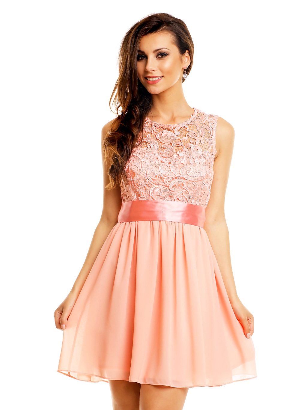 Plesové šaty krátké s krajkou jemně růžové HS367