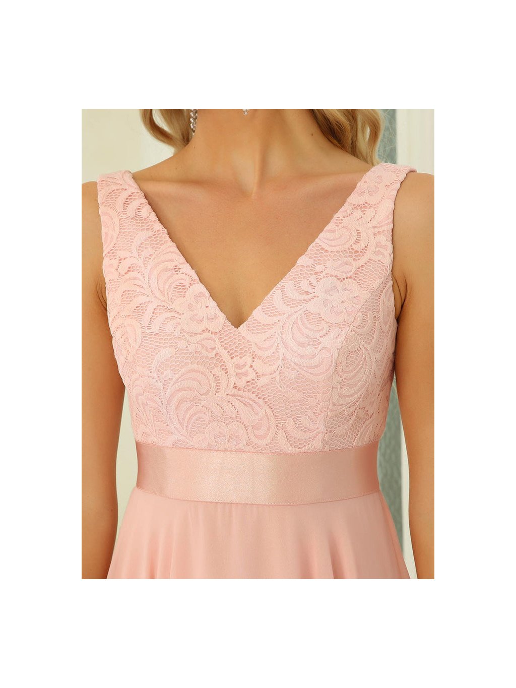 Jemné růžové šaty Ever Pretty. Šaty jsou na široká ramínka, véčkový výstřih. Na zádech skrytý zip.