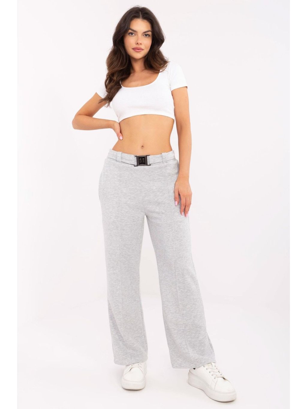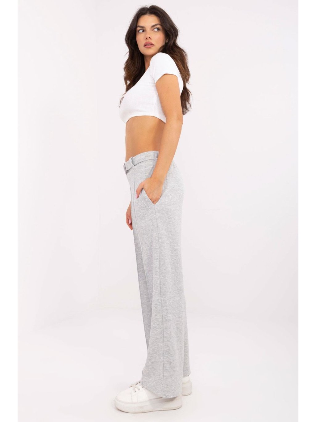 Pohodlné a stylové dámské teplákové kalhoty jsou skvělou volbou na každý den. Vyrobené z vysoké kvality směsi polyesteru, viskózy a elastanu, poskytují pohodlí a volnost pohybu. Vysoký pas s elastickou gumou vpředu zajišťuje ideální přizpůsobení a zvýrazňuje postavu. Přímé nohavice s elegantním záhybem jim dodávají elegantní charakter, díky čemuž skvěle kombinují pohodlí s casual stylem. Kalhoty nemají klasické zapínání, ale jsou vybaveny praktickým zapínacím páskem, který jim dodává rafinovaný vzhled. Další výhodou jsou boční kapsy, které zvyšují funkčnost. Ideální jak pro každodenní stylizace, tak i pro elegantnější sestavy.