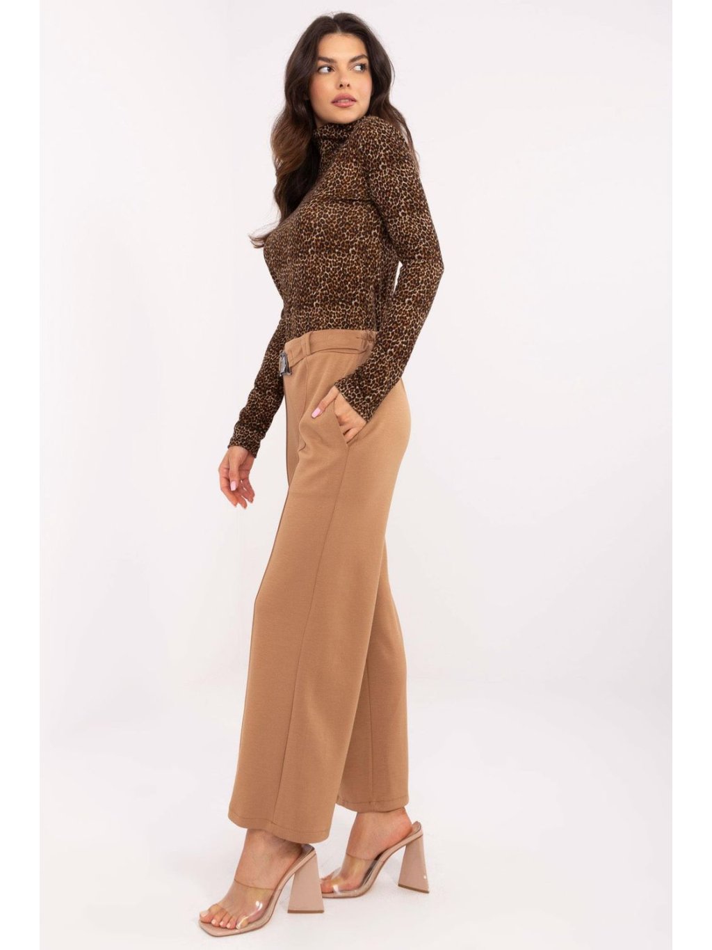 Pohodlné a stylové dámské teplákové kalhoty jsou skvělou volbou na každý den. Vyrobené z vysoké kvality směsi polyesteru, viskózy a elastanu, poskytují pohodlí a volnost pohybu. Vysoký pas s elastickou gumou vzadu zajistí ideální přizpůsobení a zdůrazní postavu. Přímé nohavice s elegantním lemem jim dodávají elegantní charakter, díky čemuž skvěle kombinují pohodlí se stylem casual. Kalhoty nemají klasické zapínání, ale jsou vybaveny praktickým, zapínacím páskem, který jim dodává rafinovaný vzhled. Další výhodou jsou boční kapsy, které zvyšují funkčnost. Ideální jak pro každodenní stylizace, tak pro elegantnější outfity.
