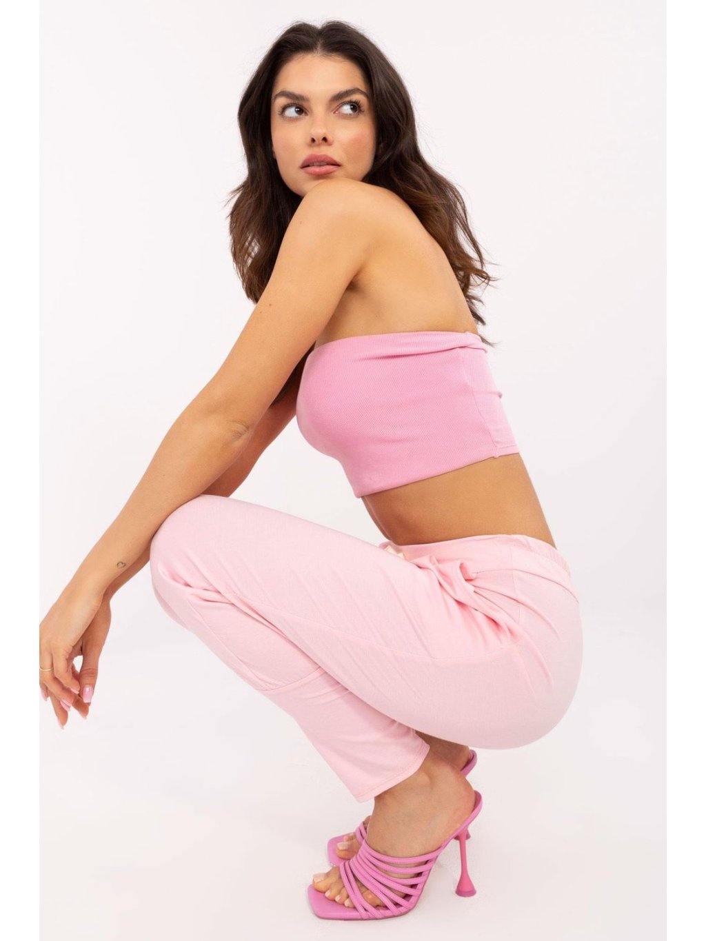 Tyto módní tepláky jsou nabídkou pro ženy, které si cení pohodlí a univerzálního stylu. Vyrobeny z měkké a příjemné na dotek směsi viskózy a elastanu, kalhoty jsou pohodlné na nošení a skvěle se přizpůsobují. Vysoký pas zvýrazňuje pas a opticky prodlužuje nohy, zatímco široké manžety na dolním okraji nohavic dodávají kalhotám sportovní charakter a zabraňují jejich vyhrnování. Je to ideální řešení pro ženy, které si cení pohodlí a funkčnosti. Šnurování v pase umožňuje dokonalé přizpůsobení kalhot postavě a boční kapsy na vkládání jsou praktické a umožňují ukládání drobných předmětů, jako je telefon nebo klíče. Univerzální střih a hladký vzor zajišťují, že kalhoty se hodí k mnoha stylizacím, jak pohodlným, tak sportovním. Můžete je nosit každý den, na procházku, na trénink nebo na setkání s přáteli. Tyto dámské tepláky jsou ideální volbou pro ženy, které si cení pohodlí, stylu a funkčnosti. Ukážou se jak během každodenních aktivit, tak při relaxaci doma.