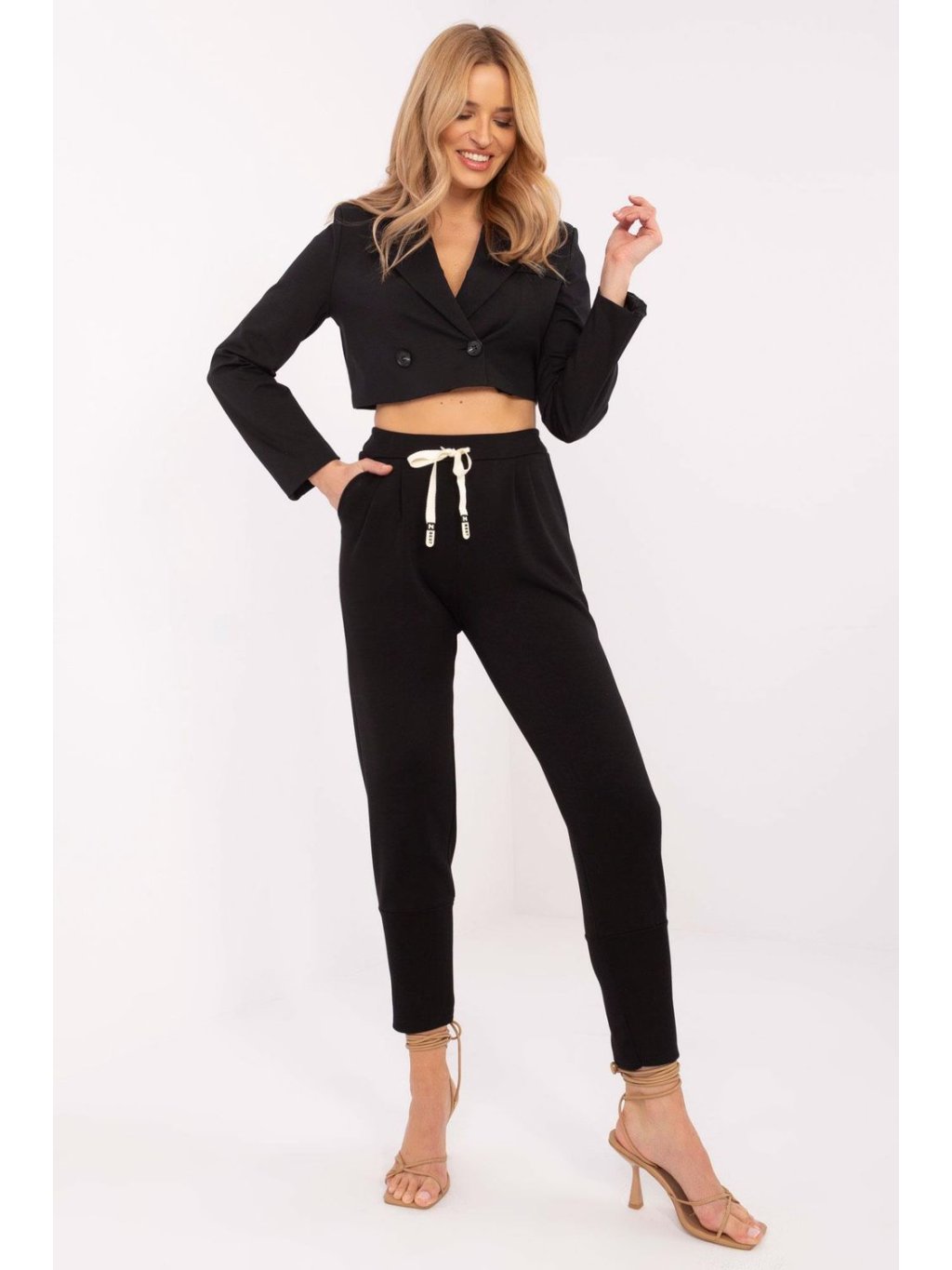 Tyto módní teplákové kalhoty jsou nabídkou pro ženy, které oceňují pohodlí a univerzální styl. Vyrobené z měkké a příjemné směsi viskózy a elastanu jsou kalhoty pohodlné a skvěle padnou. Vysoký pas zdůrazňuje pas a opticky prodlužuje nohy, a široké manžety na spodní části nohavic přidávají kalhotám sportovní charakter a brání jejich zavinování. To je ideální řešení pro ženy, které oceňují pohodlí a funkčnost. Šňarování v pasu umožňuje ideální přizpůsobení kalhot postavě, a vložené boční kapsy jsou praktické a umožňují uchování drobných předmětů, jako je telefon nebo klíče. Univerzální střih a hladký vzor způsobují, že kalhoty ladí s mnoha stylingy, jak každodenními, tak sportovními. Můžete je nosit každý den, na procházku, na trénink nebo na setkání s přáteli. Tyto dámské teplákové kalhoty jsou ideální volbou pro ženy, které oceňují pohodlí, styl a funkčnost. Osvědčí se jak při každodenních aktivitách, tak při odpočinku doma.