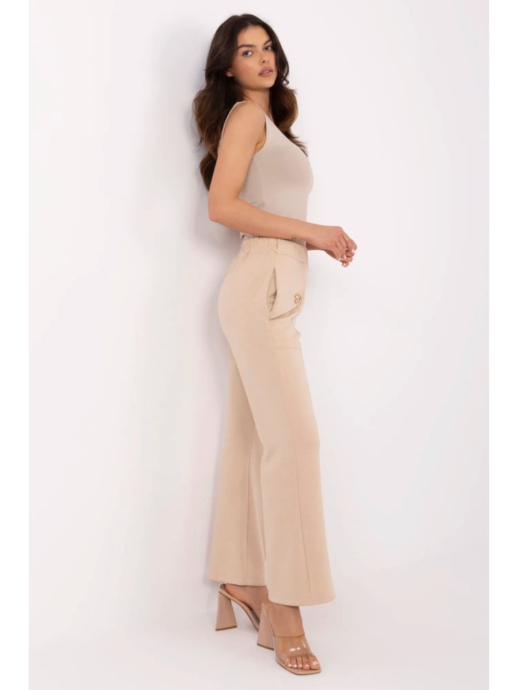 Tyto stylové tepláky kombinují pohodlí a módní střih zvonů, vytvářející ideální řešení pro každodenní nošení i do práce. Vyrobené z vysoké kvality směsi viskózy, elastanu a polyesteru, zajišťují měkkost, pružnost a skvělé přizpůsobení postavě. Vysoký pas a elastický pás zaručují pohodlí a zdůrazňují pas, zatímco široké nohavice dodávají elegantní, prodlužující efekt postavě. Boční kapsy zvyšují funkčnost kalhot, činí je praktickou volbou na každou příležitost. Hladký vzor a minimalistický design doplňují odnímatelné brože, které umožňují personalizaci outfitu. Tyto kalhoty jsou kombinací moderního stylu a pohodlí, ideální pro ženy, které oceňují eleganci v casualovém provedení.