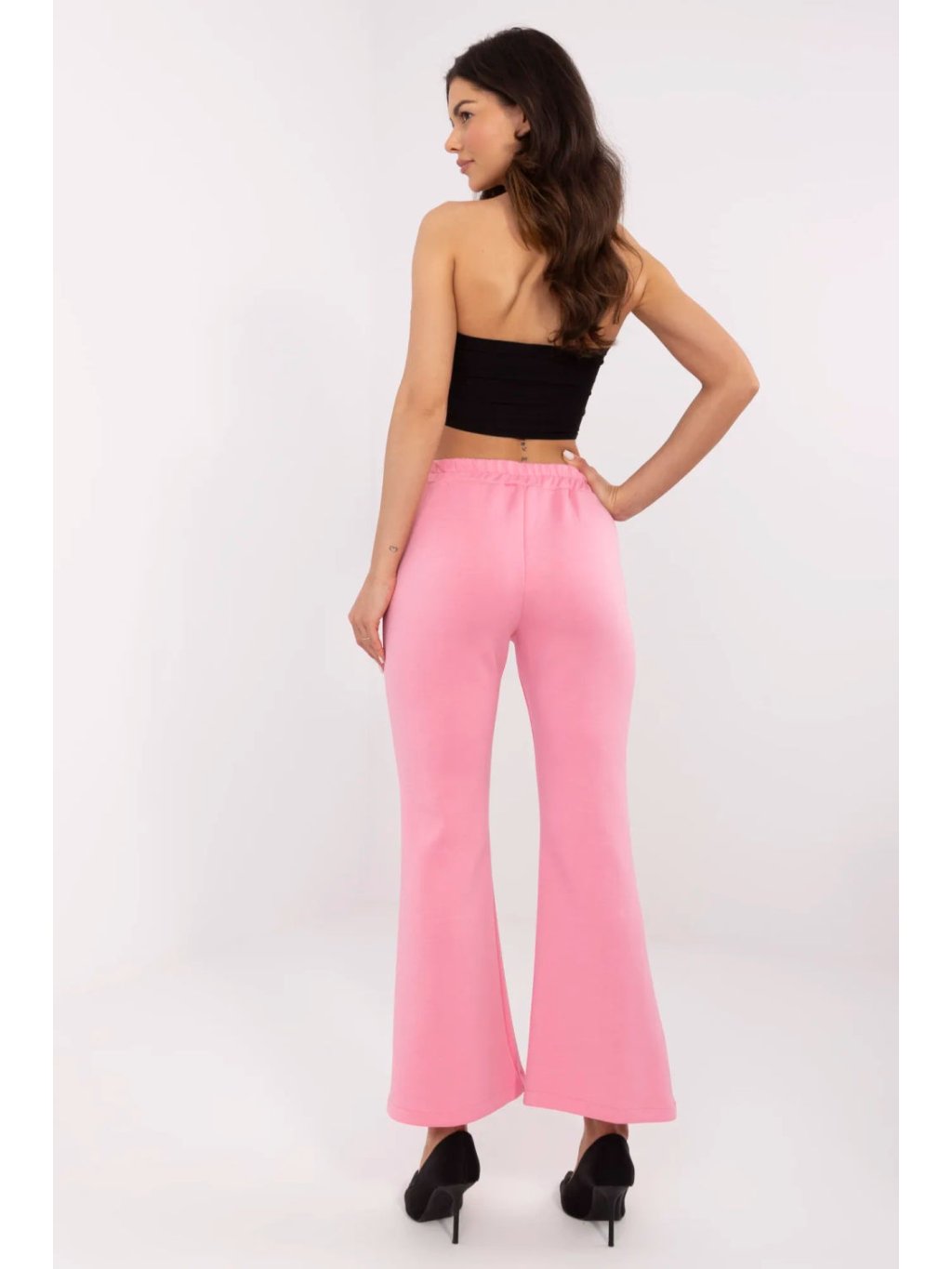 Tyto stylové teplákové kalhoty kombinují pohodlí a módní střih zvonů, vytvářejí ideální řešení pro každodenní nošení i práci. Vyrobené z vysoce kvalitní směsi viskózy, elastanu a polyesteru, poskytují měkkost, pružnost a skvělé přizpůsobení postavě. Vysoký pas a elastický pásek zaručují pohodlí a zdůrazňují pas, zatímco široké nohavice dodávají elegantní, prodlužující efekt postavě. Boční kapsy zvyšují funkčnost kalhot a dělají je praktickou volbou na každou příležitost. Hladký vzor a minimalistický design doplňují výměnné brože, které umožňují personalizaci stylizace. Tyto kalhoty spojují moderní styl a pohodlí, ideální pro ženy, které si váží elegance v ležérním provedení.
