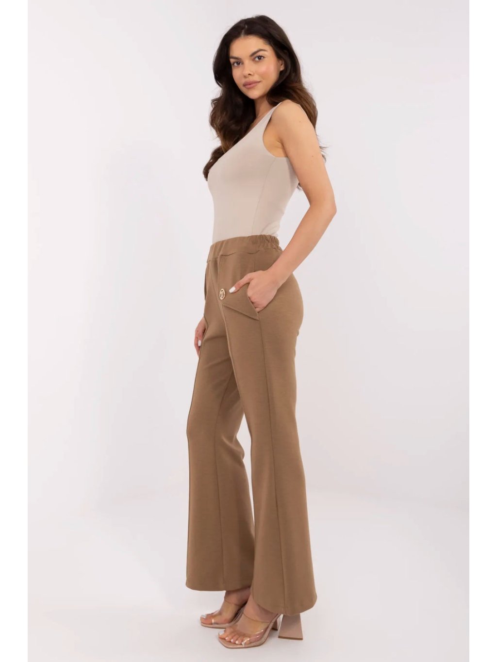 Tyto stylové tepláky spojují pohodlí a módní střih zvonů, vytvářejí ideální řešení pro každodenní nošení i do práce. Vyrobena z vysoce kvalitní směsi viskózy, elastanu a polyesteru, zajistí měkkost, pružnost a skvělé přizpůsobení postavě. Vysoký pas a elastický pás zaručují pohodlí a zdůrazňují pas, zatímco široké nohavice dodávají postavě elegantní a prodlužující efekt. Boční kapsy s funkcí vkládání zvyšují funkčnost kalhot a činí je praktickou volbou na každou příležitost. Hladký vzor a minimalistický design doplňují odnímatelné brože, které umožňují personalizaci stylizace. Tyto kalhoty jsou kombinací moderního stylu a pohodlí, ideální pro ženy, které si cení elegance v casualovém provedení.