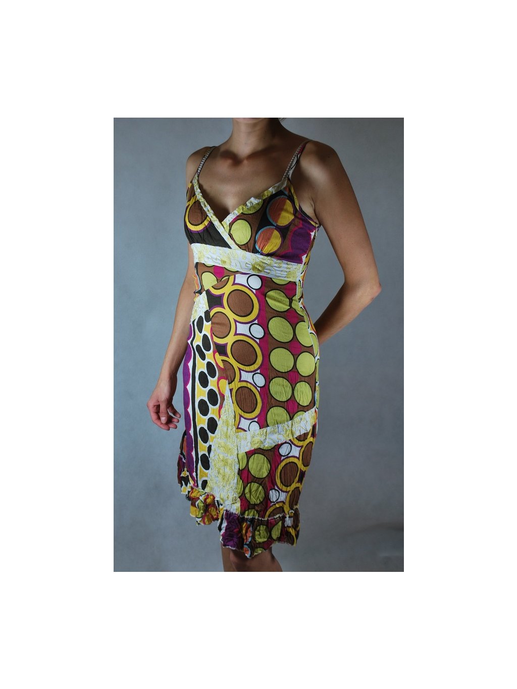 letní příjemné šaty - bavlna Trendy vzory, sešité v zajímavé kombinaci, každé šaty mají originální vzor. Ramínka jsou na posouvání a postranní zip pro snadné oblékání. Podšívka pro příjemné nošení. Tento nádherný kousek nemůže chybět ve vašem šatník. Velikosti: vel. 36(S) - hrudník 72-84 cm, pas 68 cm, boky 96-106 cm, délka cca 100 cm(s ramínky) vel. 38(M) - hrudník 80-91 cm, pas 76 cm, boky 98-108 cm, délka cca 100 cm(s ramínky) vel. 40(L) - hrudník 90-96 cm, pas 76 cm, boky 100-110 cm, délka cca 105 cm(s ramínky) vel. 42(XL) - hrudník 92-105 cm, pas 82 cm, boky 100-110 cm, délka cca 105 cm(s ramínky) Složení: 100% bavlna