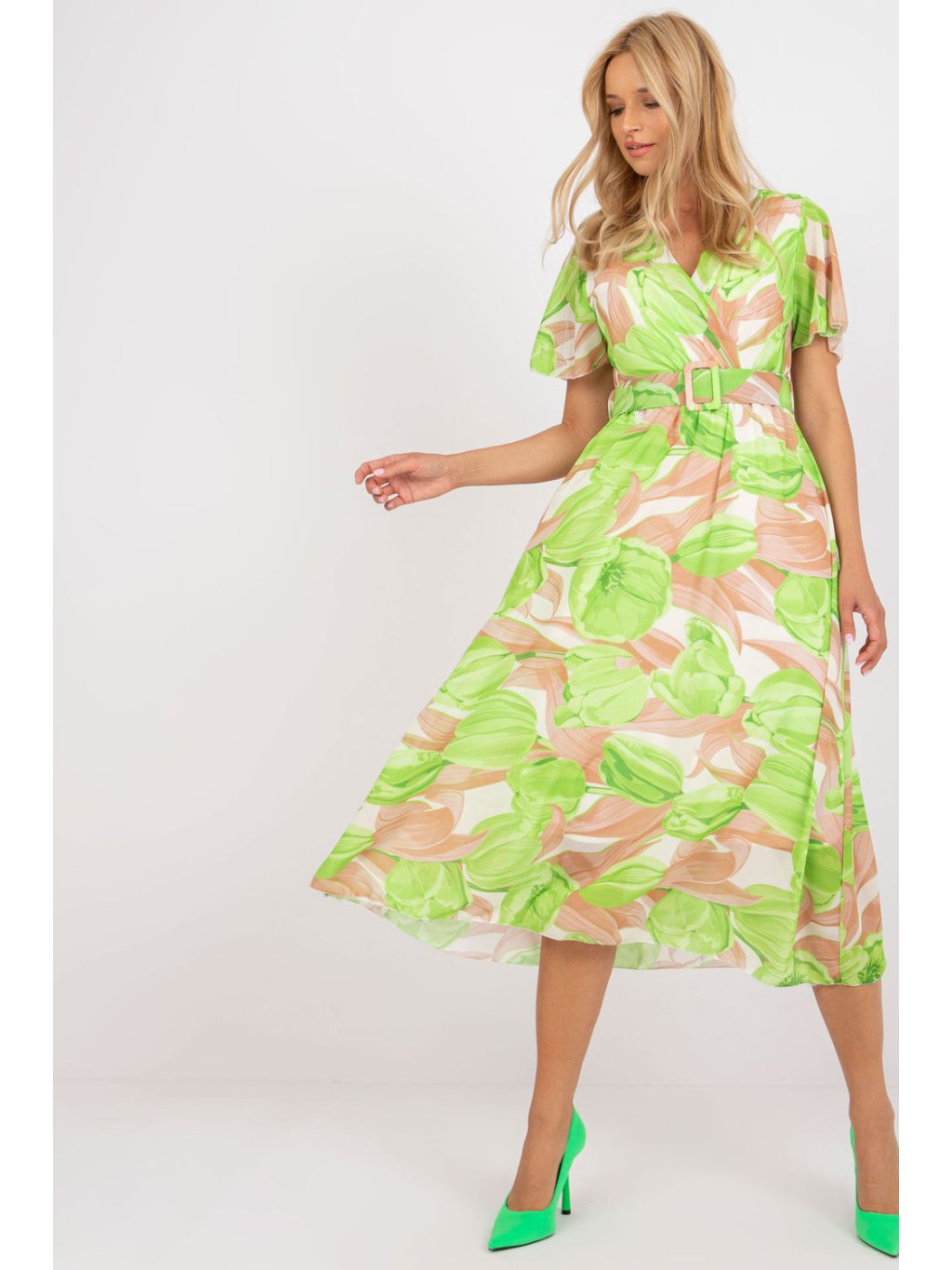 Letní šaty s krátkými rukávy v podobě volánků. Šaty s podšívkou. Obálkový výstřih, pásek v pase, rozšířená spodní část. Ideální pro mnoho příležitostí.
