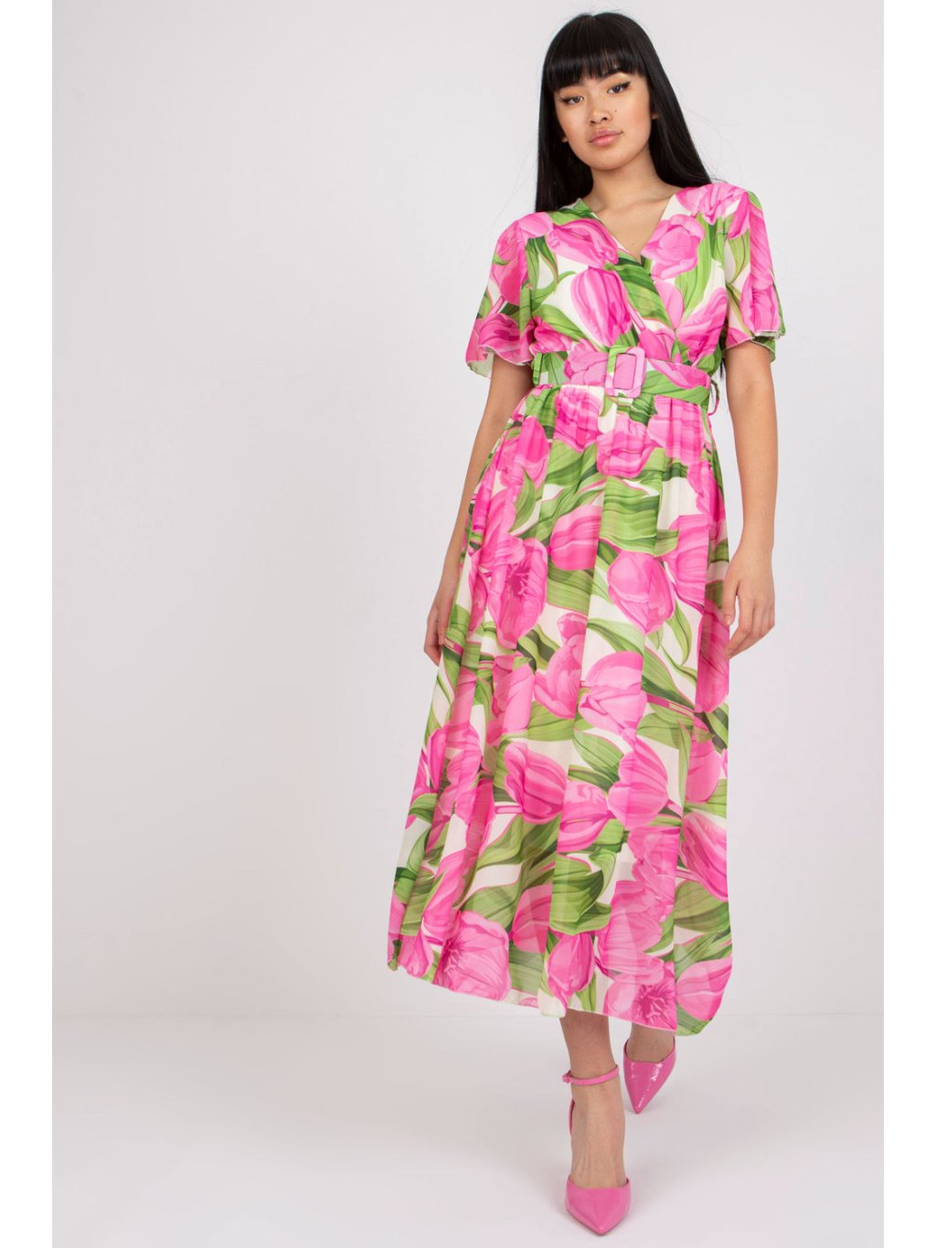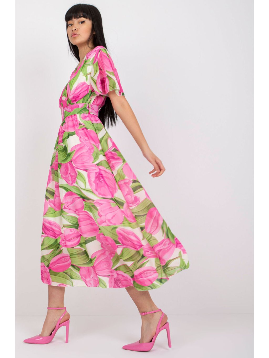 Letní šaty s krátkými rukávy v podobě volánků. Šaty s podšívkou. Obálkový výstřih, pásek v pase, rozšířená spodní část. Ideální pro mnoho příležitostí.