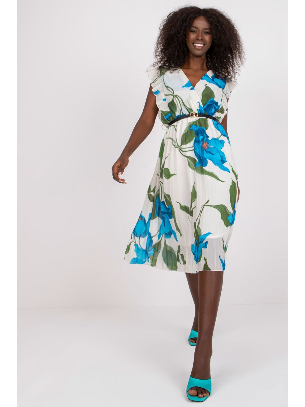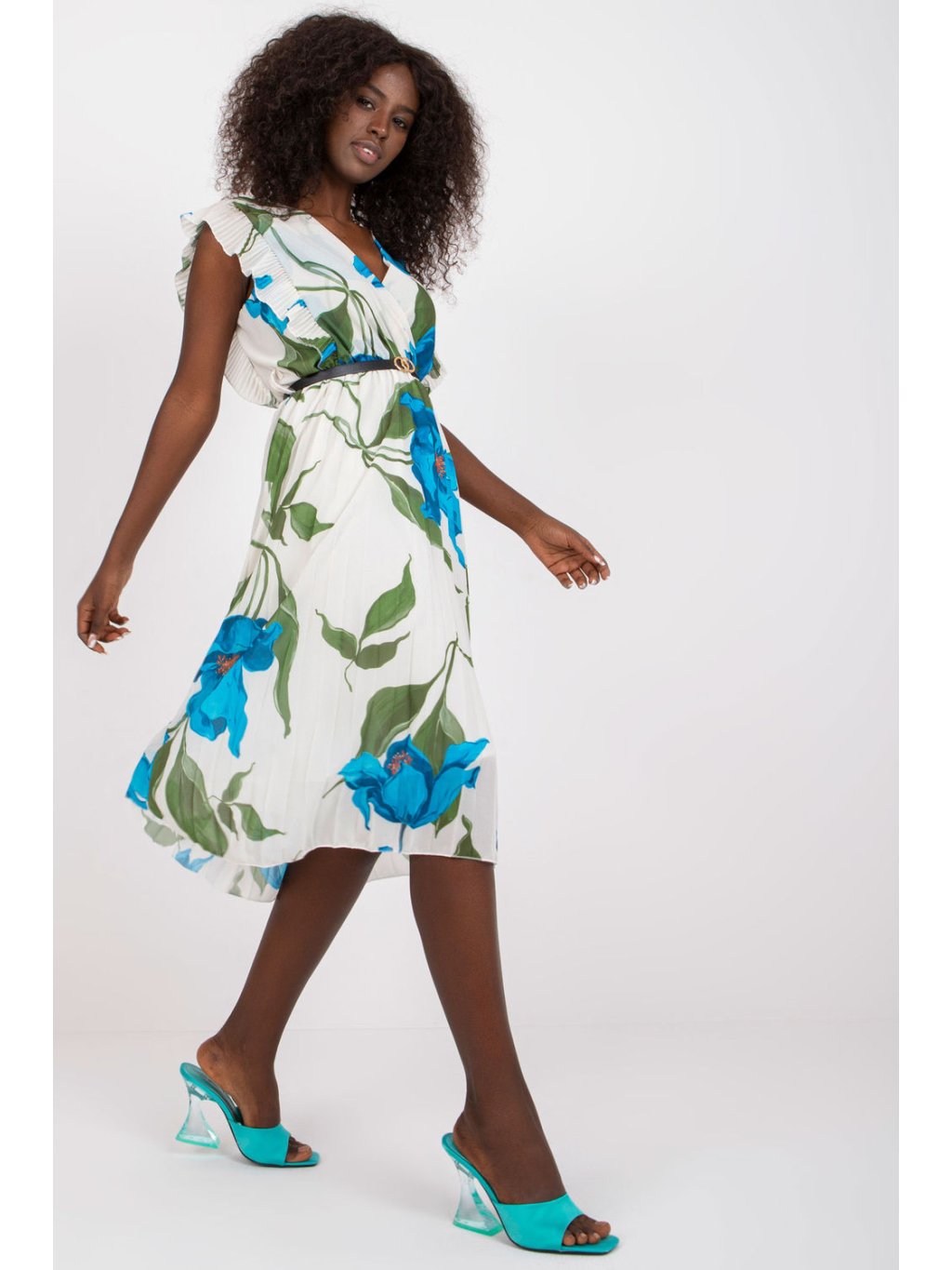 Plisované letní šaty pro mnoho příležitostí s krátkými rukávy v podobě volánku. Šaty mají podšívku, elastický pas a srdíčkový výstřih. Šaty mají rozšířený střih a kromě volánků jsou doplněny páskem v pase.