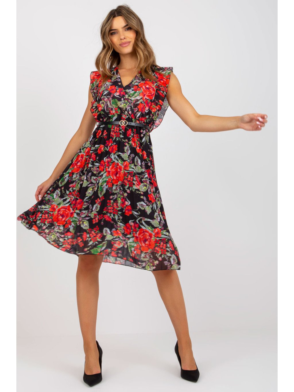 Plisované letní šaty pro mnoho příležitostí s krátkými rukávy v podobě volánku. Šaty mají podšívku, elastický pas a srdíčkový výstřih. Šaty mají rozšířený střih a kromě volánků jsou doplněny páskem v pase.